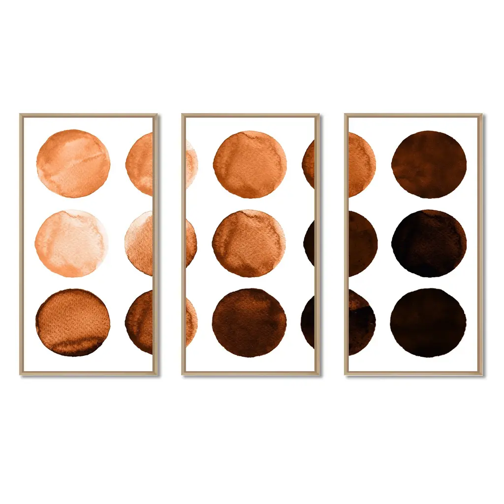 Designart "Nine Circles In Shades Of Orange And Brown I" Modern Framed Art Set Of 3 - 4 Colors Of Frames - 36 In. Wide X 28 In. High - 3 Panels - Maple