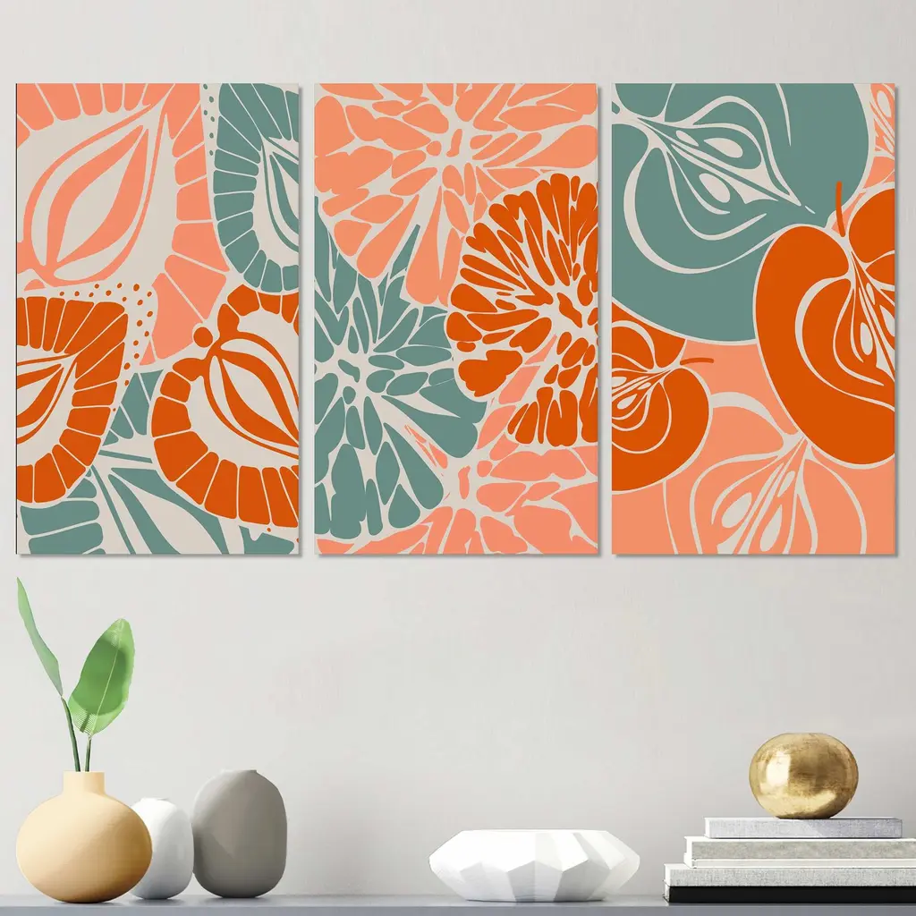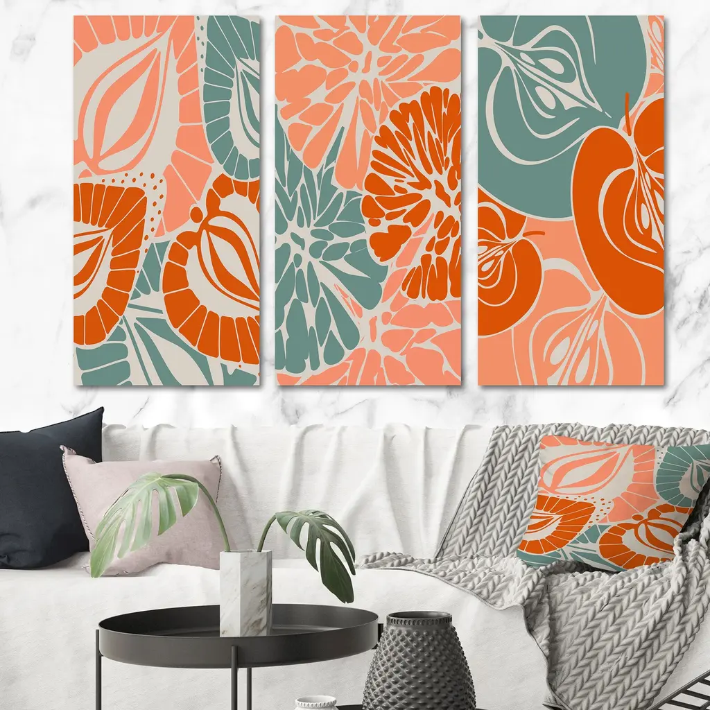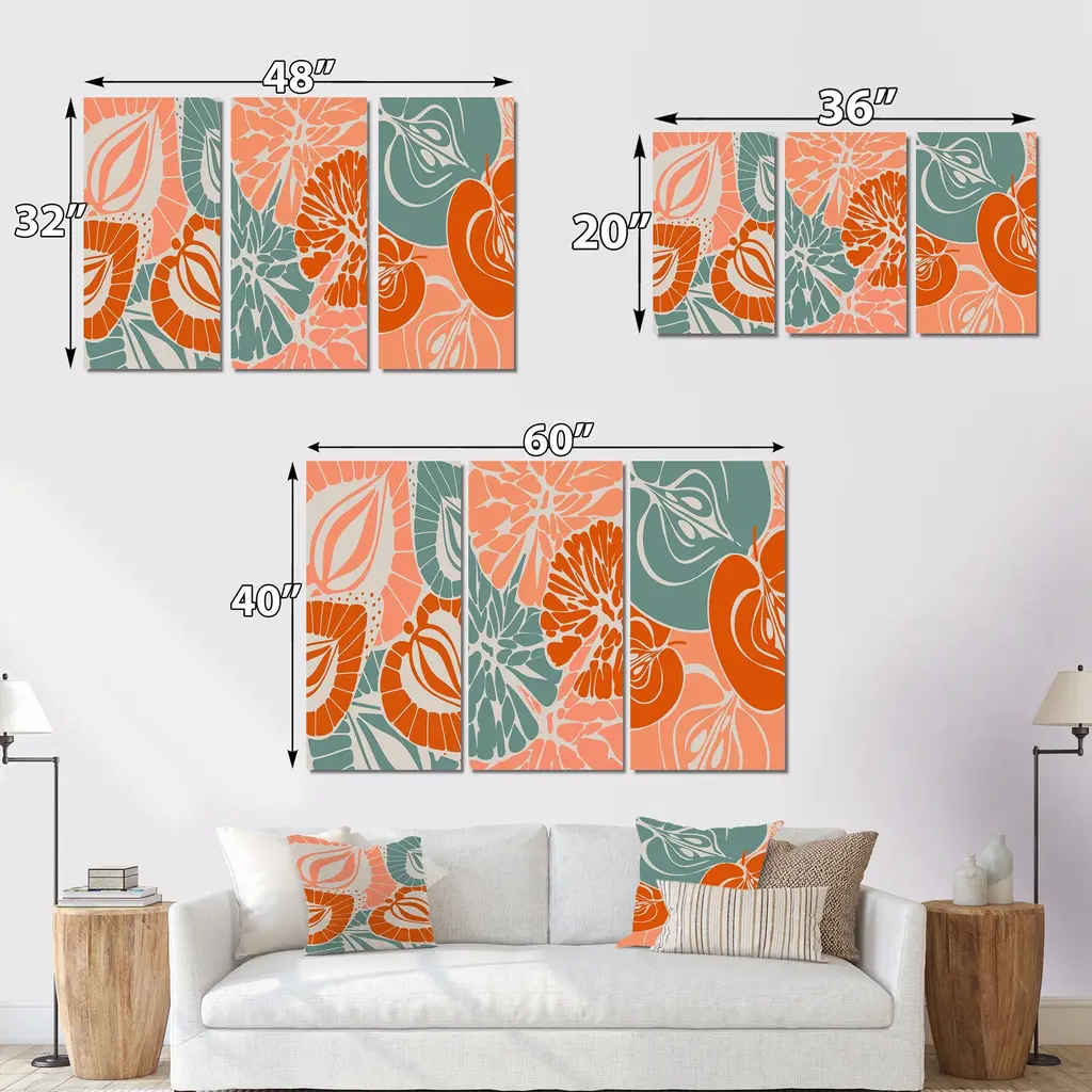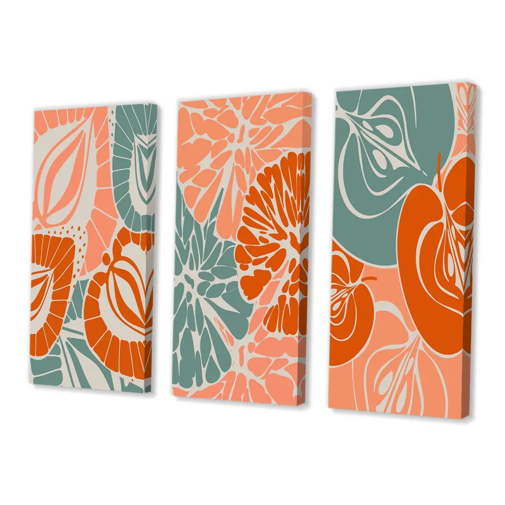 This Floral Collage is a Collection of 3 Canvas Art printed using the highest quality fade resistant ink on canvas. Every one of our fine art giclee canvas prints is printed on premium quality cotton canvas, using the finest quality inks which will not fade over time. Each giclee print is stretched tightly over a 1 inch wood sub frame ensuring the canvas is taught and does not buckle. This canvas art print is gallery-wrapped (the design continues on the sides) , giving it a real art gallery feel. All of our canvas prints are carefully packaged with plastic protection, fragile labeling and sturdy boxes to ensure a safe delivery. Every canvas print arrives ready to hang on the wall, with the hanging kits included. - Set Include: 3 Pieces of 12"x20", 12"x28", 16"x32", 20"x40", 30"x40" - Overall Dimensions: 36"x20", 36"x28", 48"x32", 60"x40", 90"x40" - Style : Traditional - Subject : Floral - Color : Orange; Green - This canvas giclee print is gallery-wrapped (the design continues on the sides) , giving it a real art gallery feel. - Premium quality cotton canvas. - Arrives ready to hang on the wall - Easy to Hang