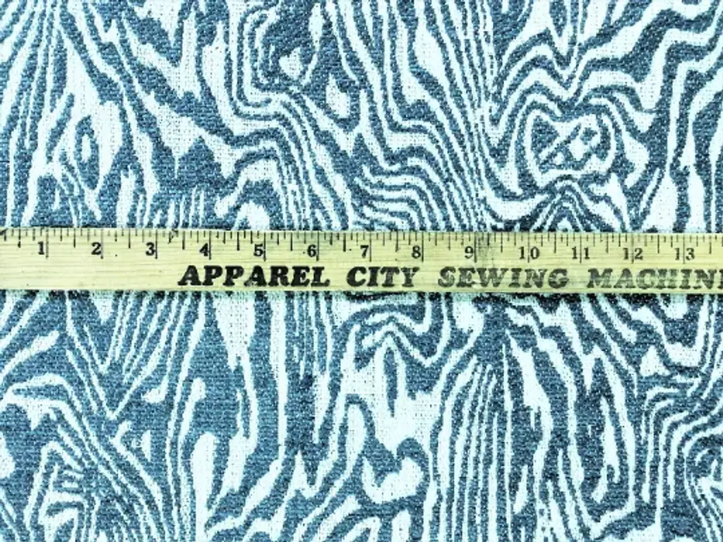 Designer Aqua Teal Blue Ivory Faux Bois Wood Grain Abstract Upholstery Fabric