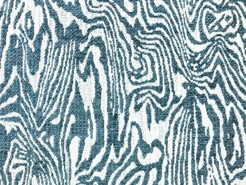 54" wide designer faux bois wood grain abstract upholstery fabric in aqua blue and ivory. Price is per yard.
