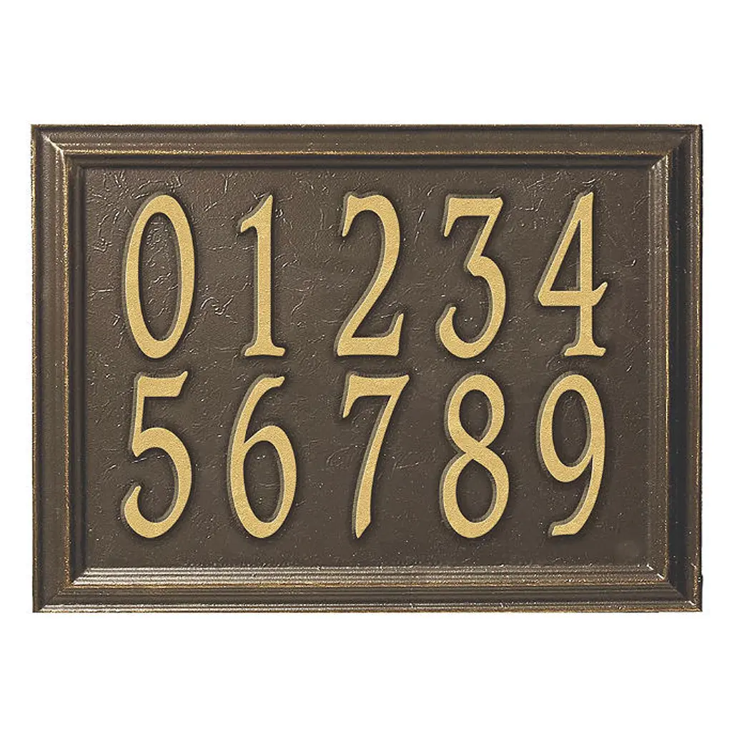 Create a Designer Address Plaque that pairs perfectly with your home's exterior. Customize this plaque with your choice of three finishes, two sizes, seven icons, and one or two lines of personalized text. Non-corroding aluminum with a protective powdercoat. Frontgate exclusive Powdercoating withstands rain, snow and UV rays without fading Standard: One-line version holds up to five 4" numbers; two-line version holds up to five 3" numbers on the first line and seventeen 1-1/4" characters on the second line Estate: One-line version holds up to five 5-1/2" numbers; two-line version holds up to five 4" numbers on the first line and seventeen 1-3/4" characters on the second line Lawn plaque includes aluminum stakes; minor assembly required To clean, use a non-abrasive detergent and water with a soft cloth, sponge or brush Please check for accuracy; personalized orders cannot be modified, cancelled, or returned after being placed Made in USA Personalized items are non-returnable. At Frontgate, our primary focus is quality. We guarantee that every product we sell will stand up to the supreme test – our customers' satisfaction. To learn more about our policies, visit our Shipping & Processing, Returns & Exchanges and Warranty & Price Guarantee pages.