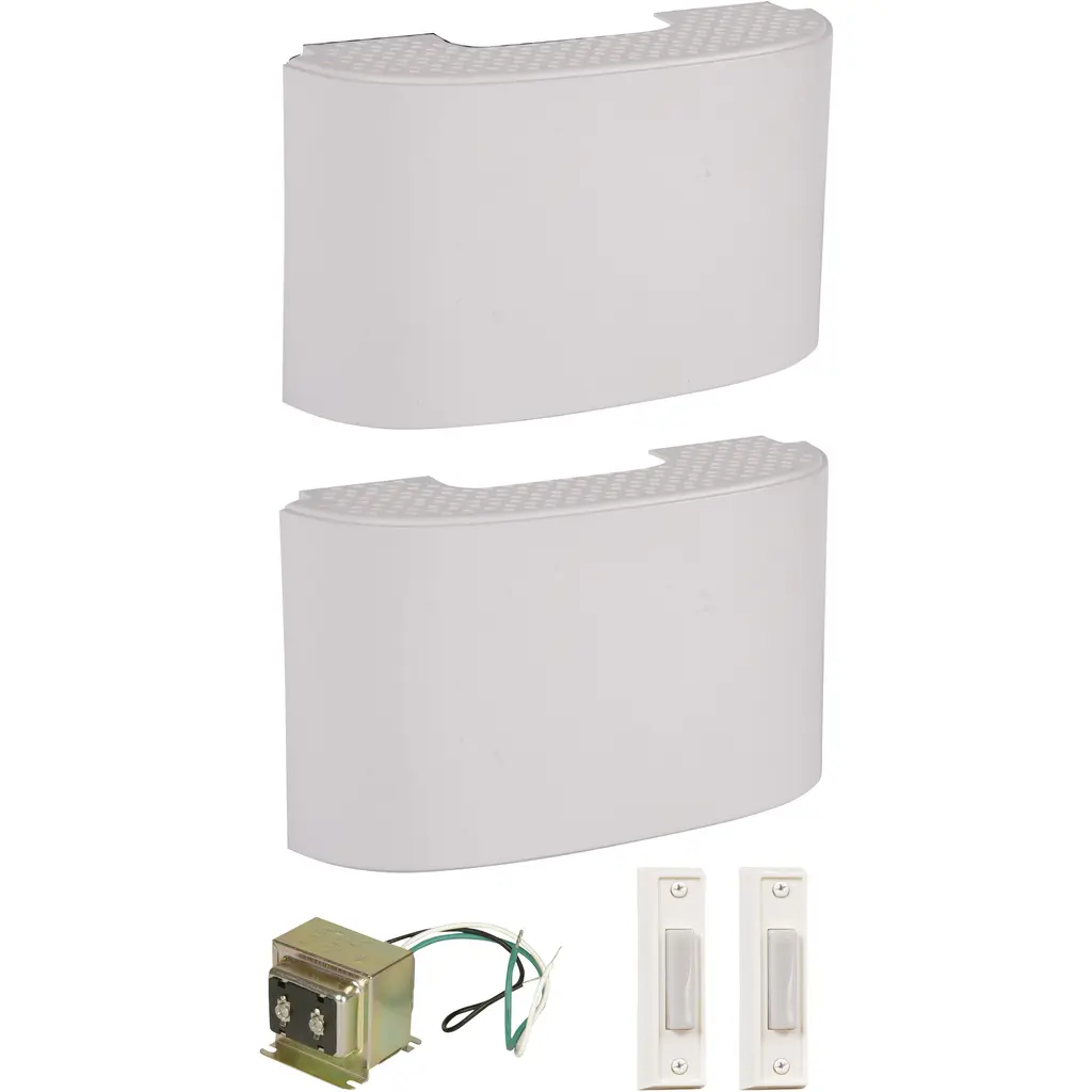 Designer Brushed Satin Nickel Chime Kit, White Buttons