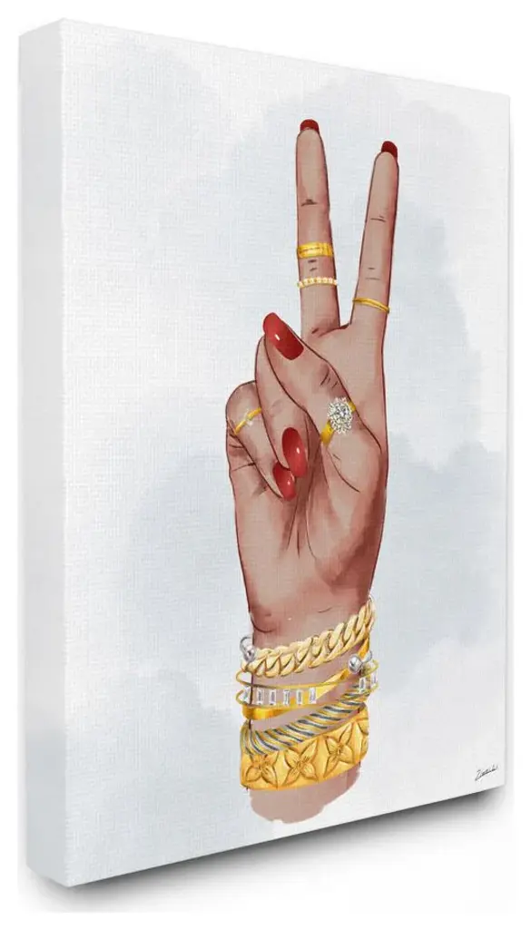 Designer Peace Hand Sign With Golden Accessories16x20