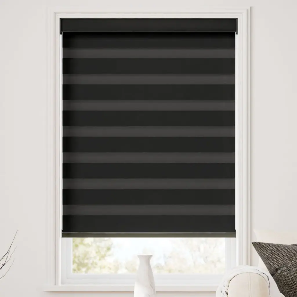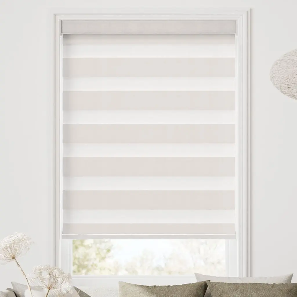 Designer Room Darkening Dual Shades – Stylish Zebra Blinds with Custom Light Control Elevate your space with the modern functionality and layered style of the Designer Room Darkening Dual Shades from Select Blinds. These elegant zebra blinds feature alternating sheer and opaque fabric bands, allowing you to seamlessly transition between filtered light and near-total privacy—perfect for living rooms, offices, and bedrooms.