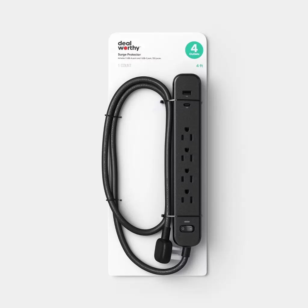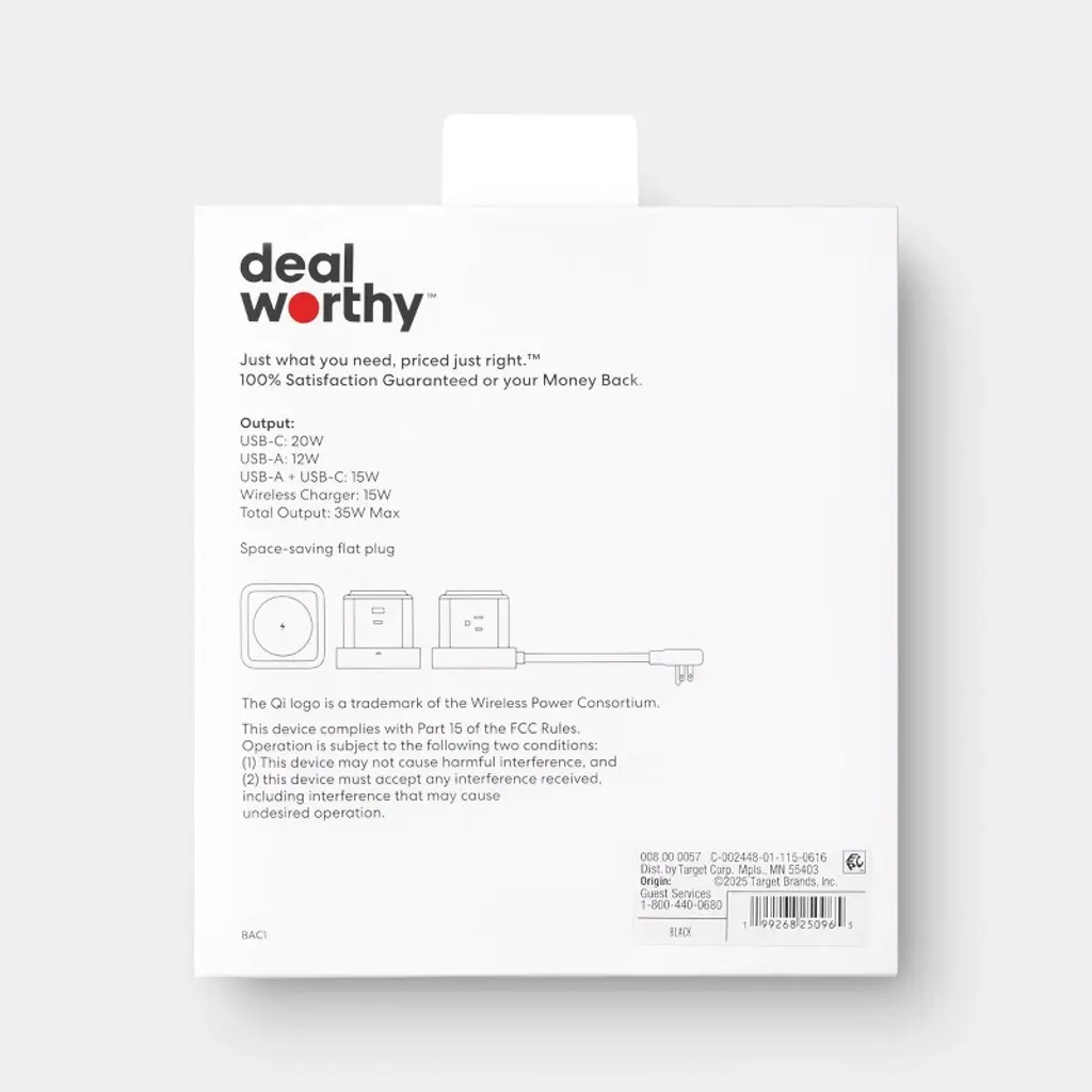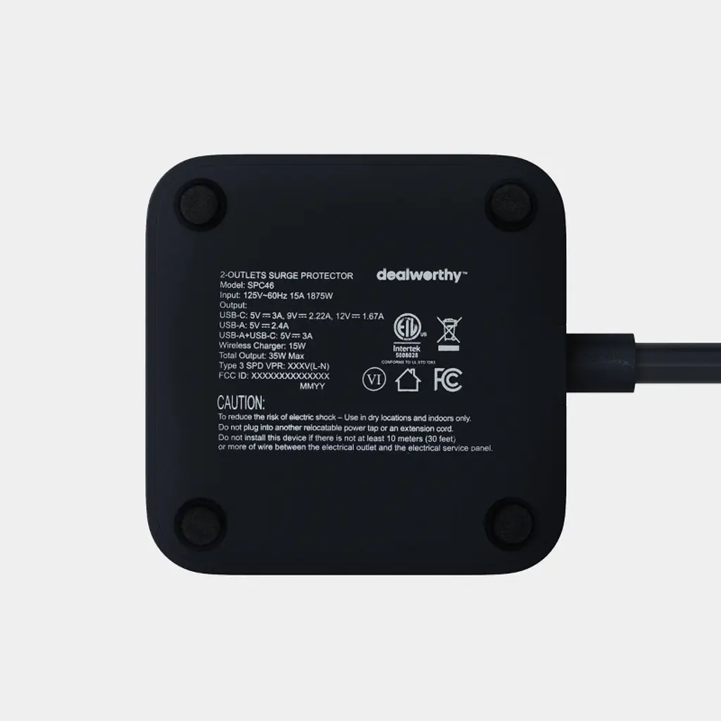 Desktop Surge Protector Usb-a And Usb-c With Top Charging Pad Black - Dealworthy™