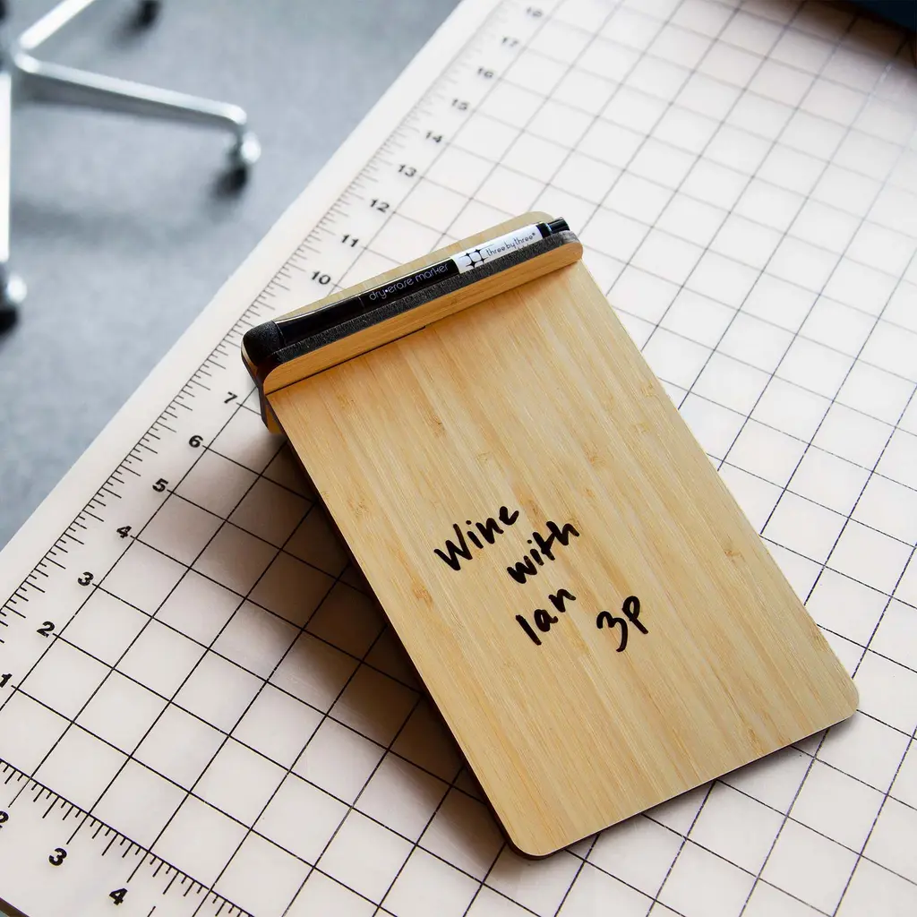 Writing your to-do list for the day or week has never been more stylish, thanks to the Desktop To-Do Board, available in sleek iron or rustic bamboo.