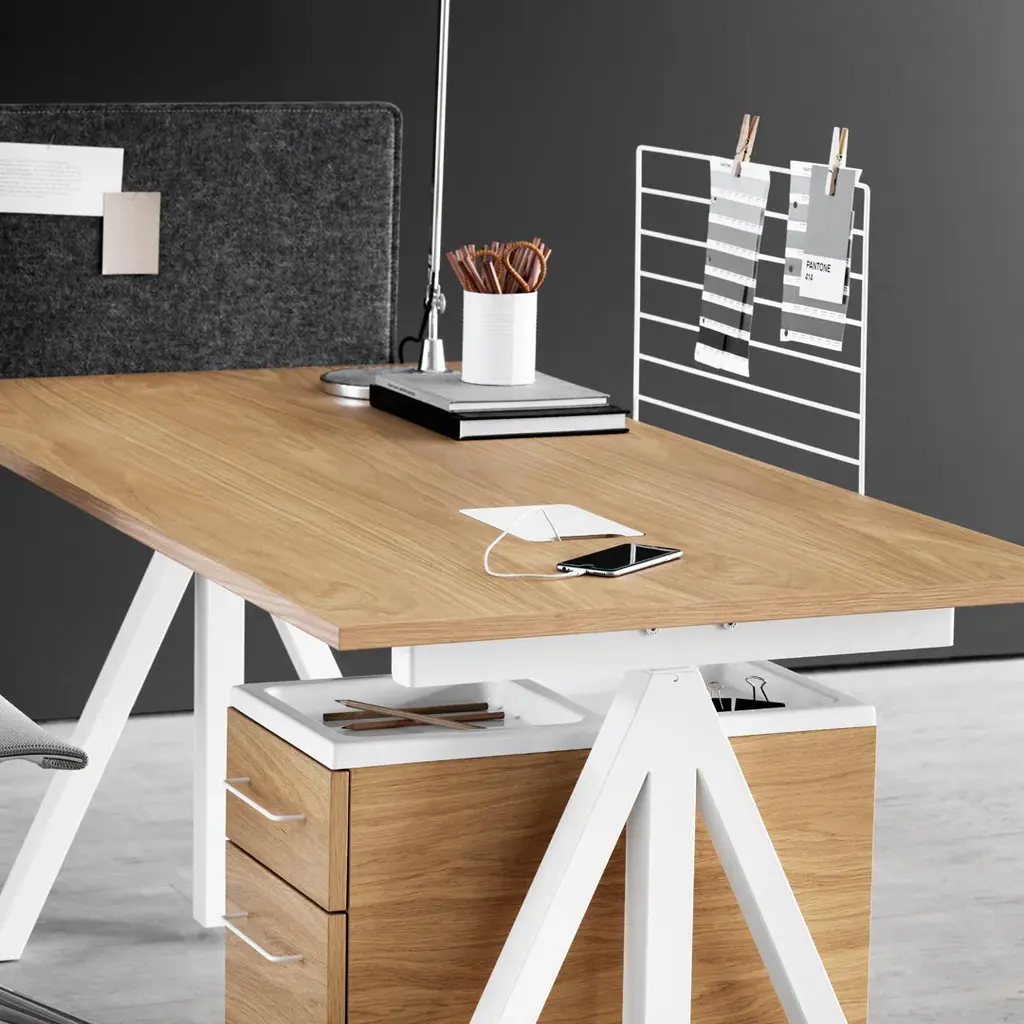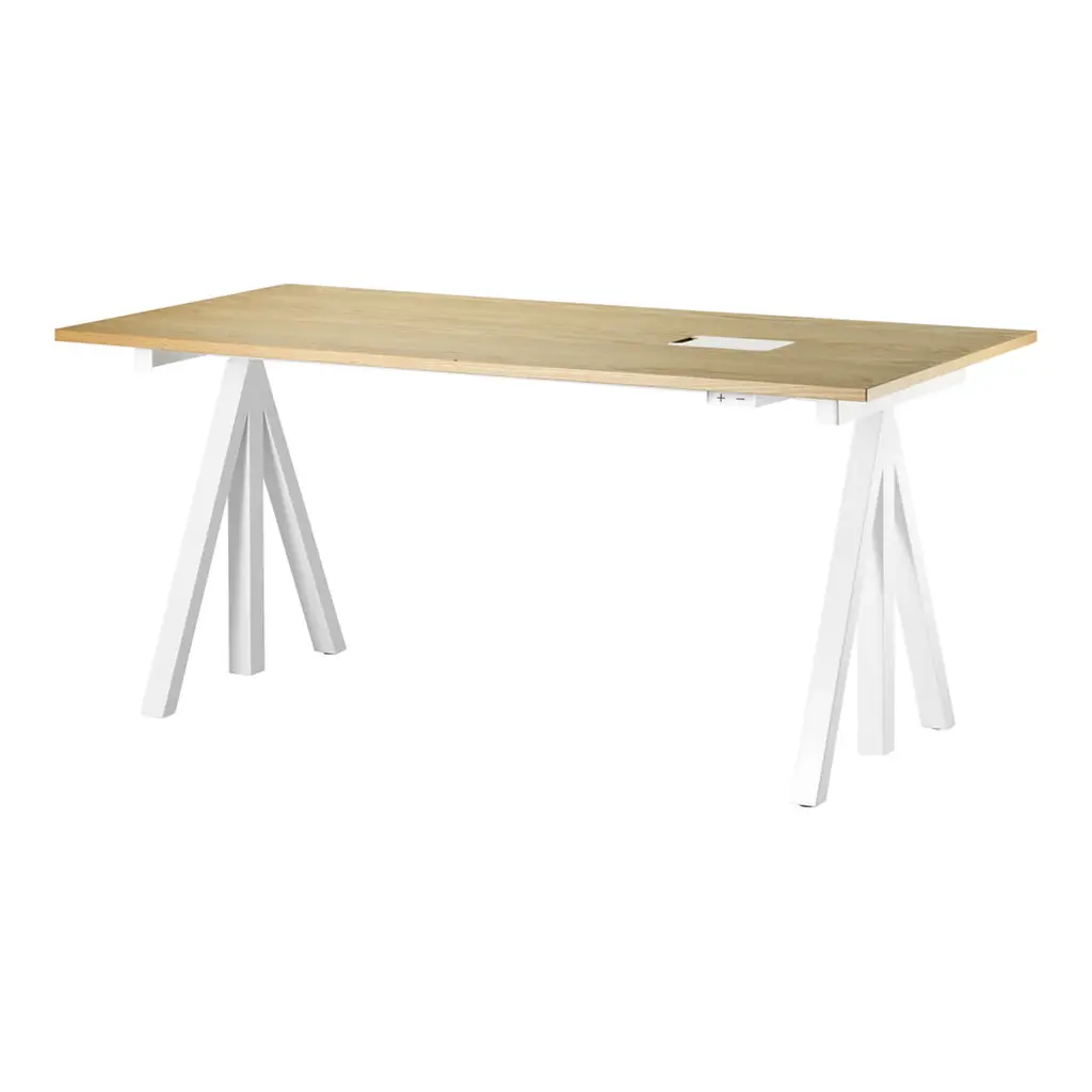 Please note: Frame sold separately The height-adjustable work desk from Works makes it possible to create flexible and ergonomic workspaces. The work desk consists of one height-adjustable table frame and one work desk with cable cover. The work desks with 78 cm depth are available in three widths: 120, 140 and 160 cm. The work desk with 90 cm depth is intended for a meeting table or for a larger workspace and is therefore available in one width, 180 cm. The frame's highest height is 118.5 cm and the lowest height is 71.5 cm and fits to all work desks.