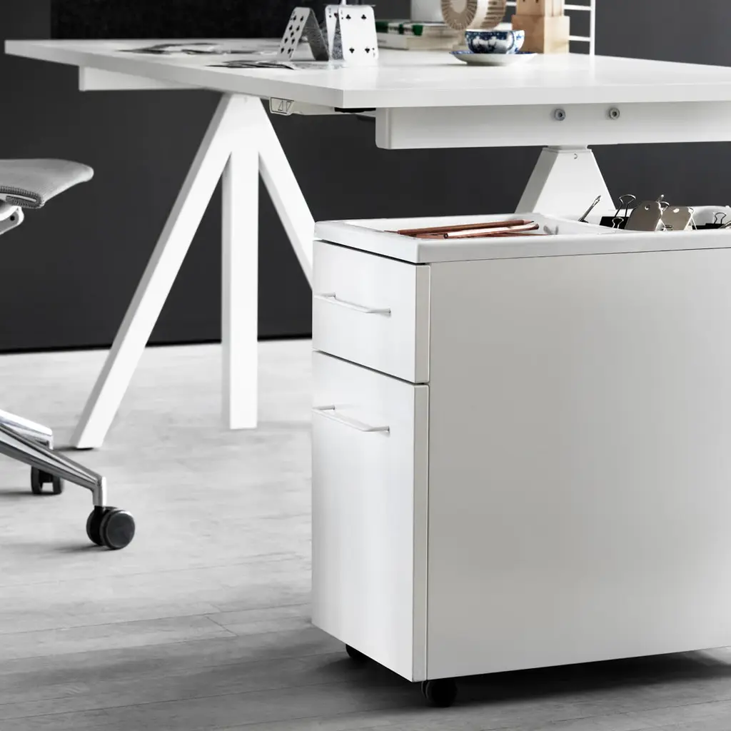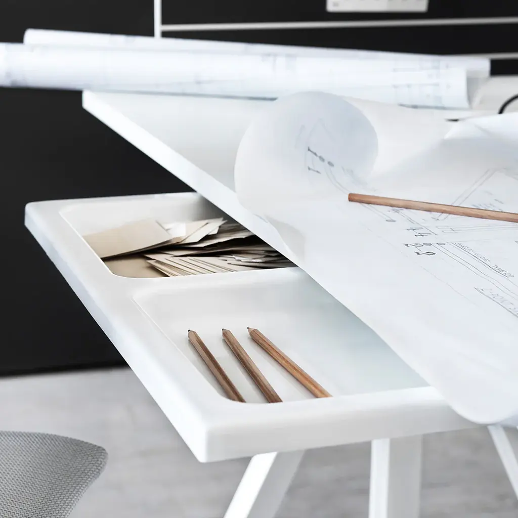 Please note: Frame sold separately The height-adjustable work desk from Works makes it possible to create flexible and ergonomic workspaces. The work desk consists of one height-adjustable table frame and one work desk with cable cover. The work desks with 78 cm depth are available in three widths: 120, 140 and 160 cm. The work desk with 90 cm depth is intended for a meeting table or for a larger workspace and is therefore available in one width, 180 cm. The frame’s highest height is 118.5 cm and the lowest height is 71.5 cm and fits to all work desks.