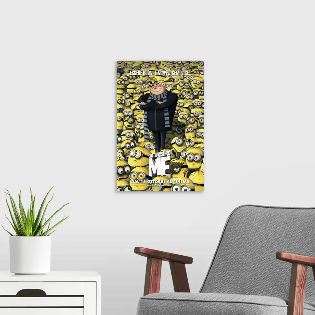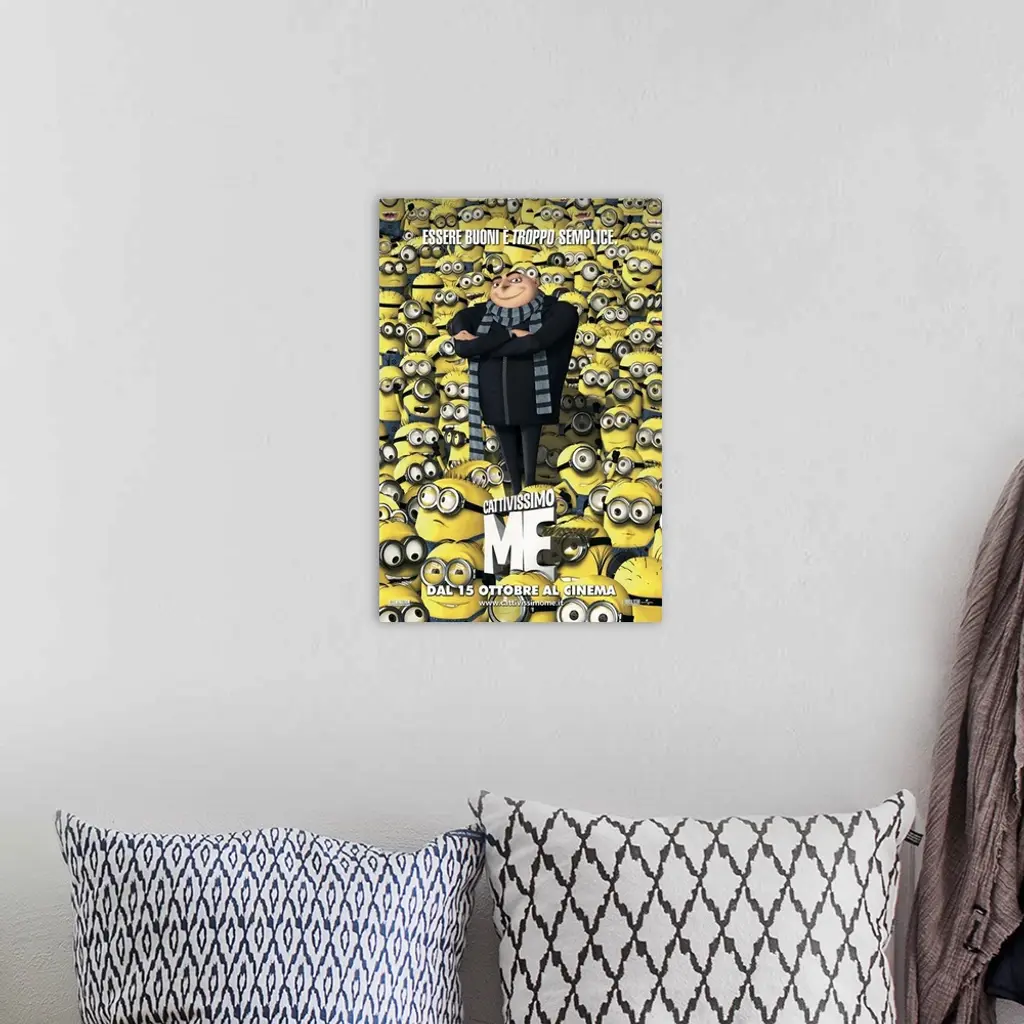 Movie poster for "Despicable Me" in Italian. The main character of the film is surrounded fully by his yellow minions.