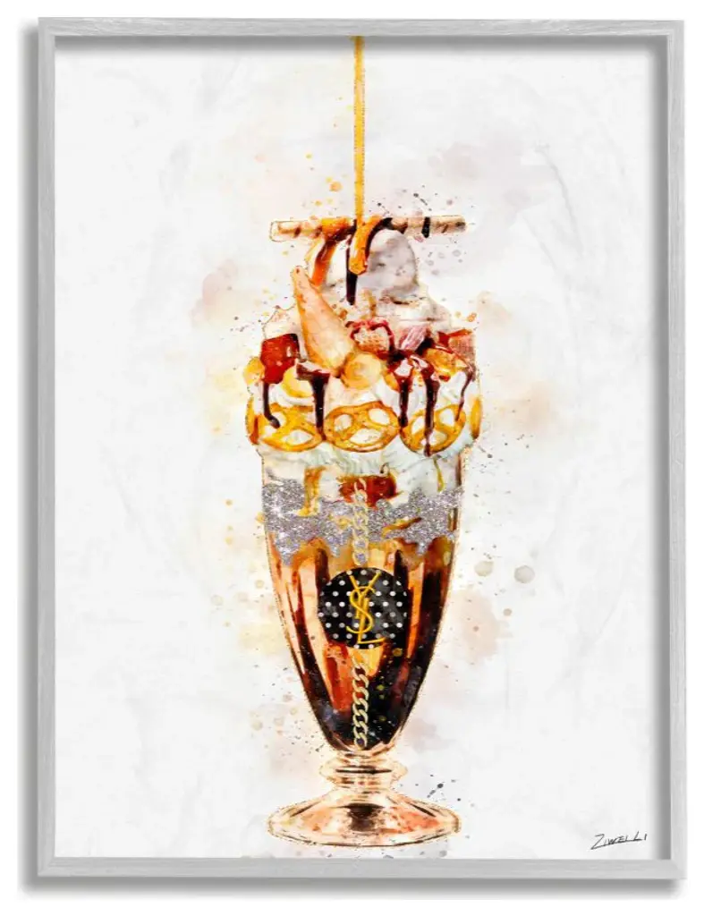 Dessert Fashion Ice Cream Sundae Glitter Orange Red Brown,1pc, Each 11 X 14
