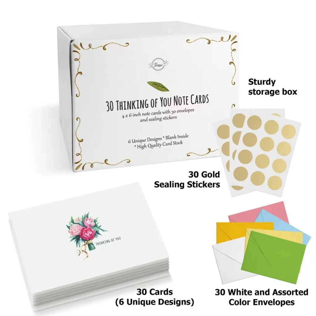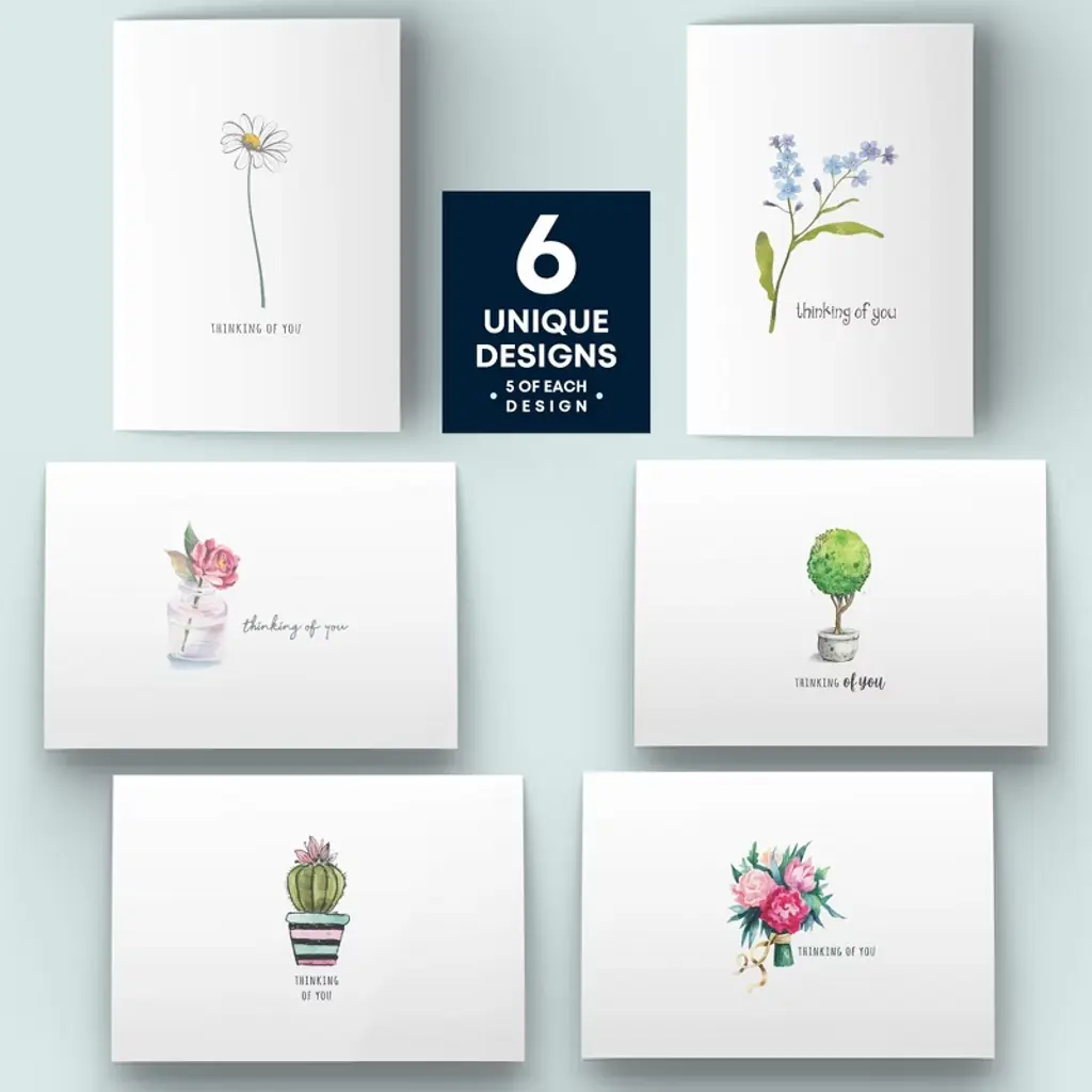 Dessie 30 Blank Inside 4 X 6 Floral Thinking Of You Cards With Envelopes 6 Flower Designs