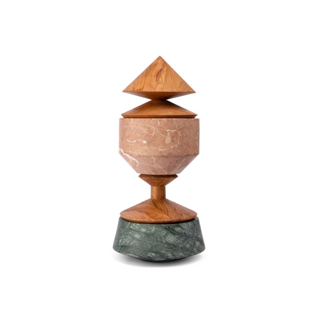 Two companies in the Neapolitan area focusing on production excellence, the search for materials, refined workmanship and infinite solutions obtained through the crossing of paths. Destini Incrociati is a collection of stunning and unique objects. Crafted in Trani Biancone, Alicante Red, Guatemala Green, Siena Yellow and Emperador marble varieties, the items feature elements of cherry wood.