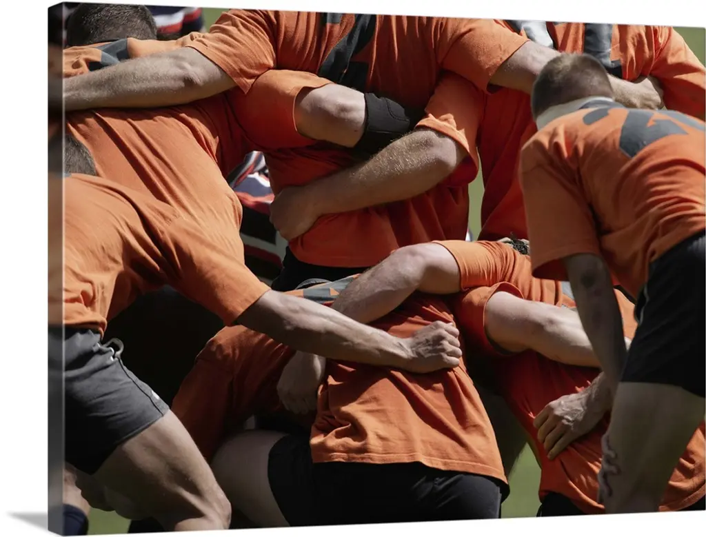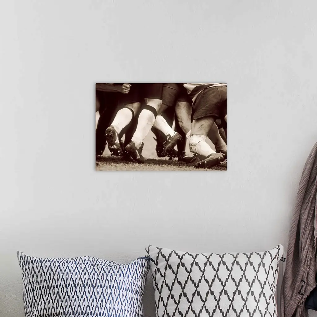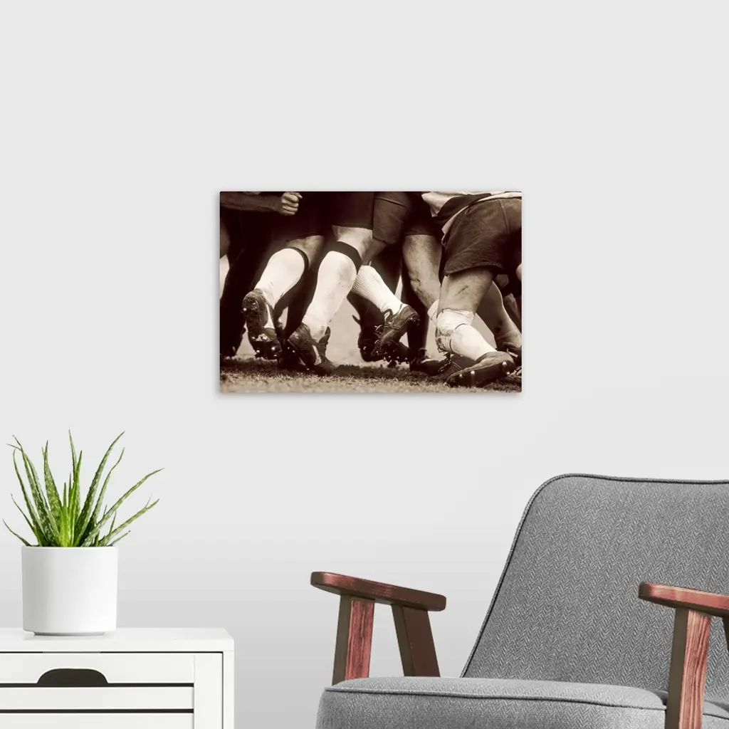 Detail Of The Feet Of A Group Of Ruby Players In A Scrum