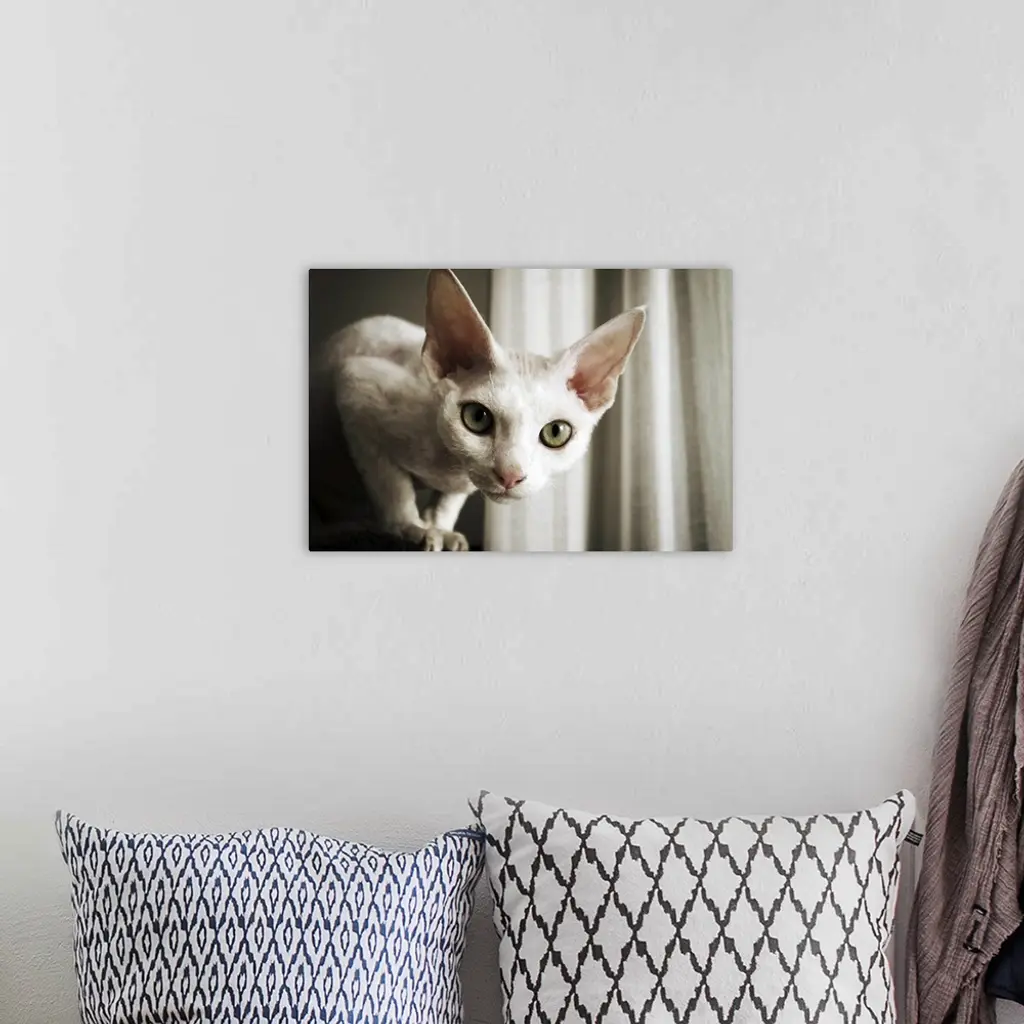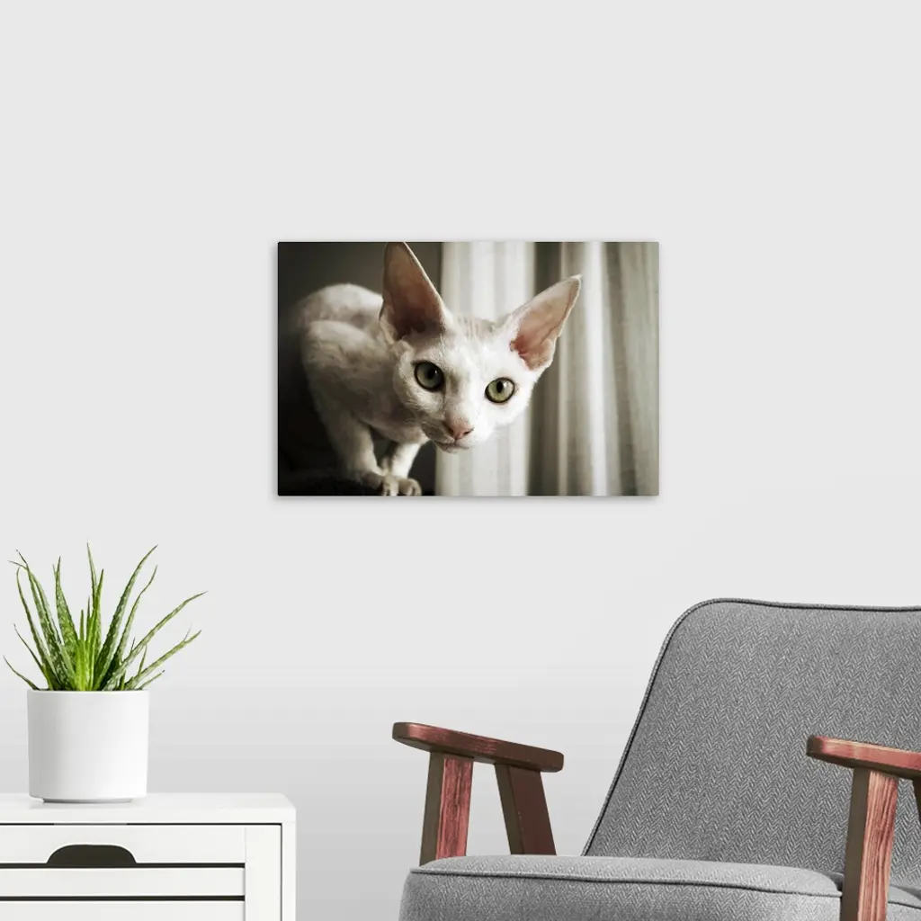 Devon Rex Cat looking at camera. wall art for home and office decor. Discover canvas art prints, photos, mural, big canvas art and framed wall art in GreatBigCanvas.com's varied collections.