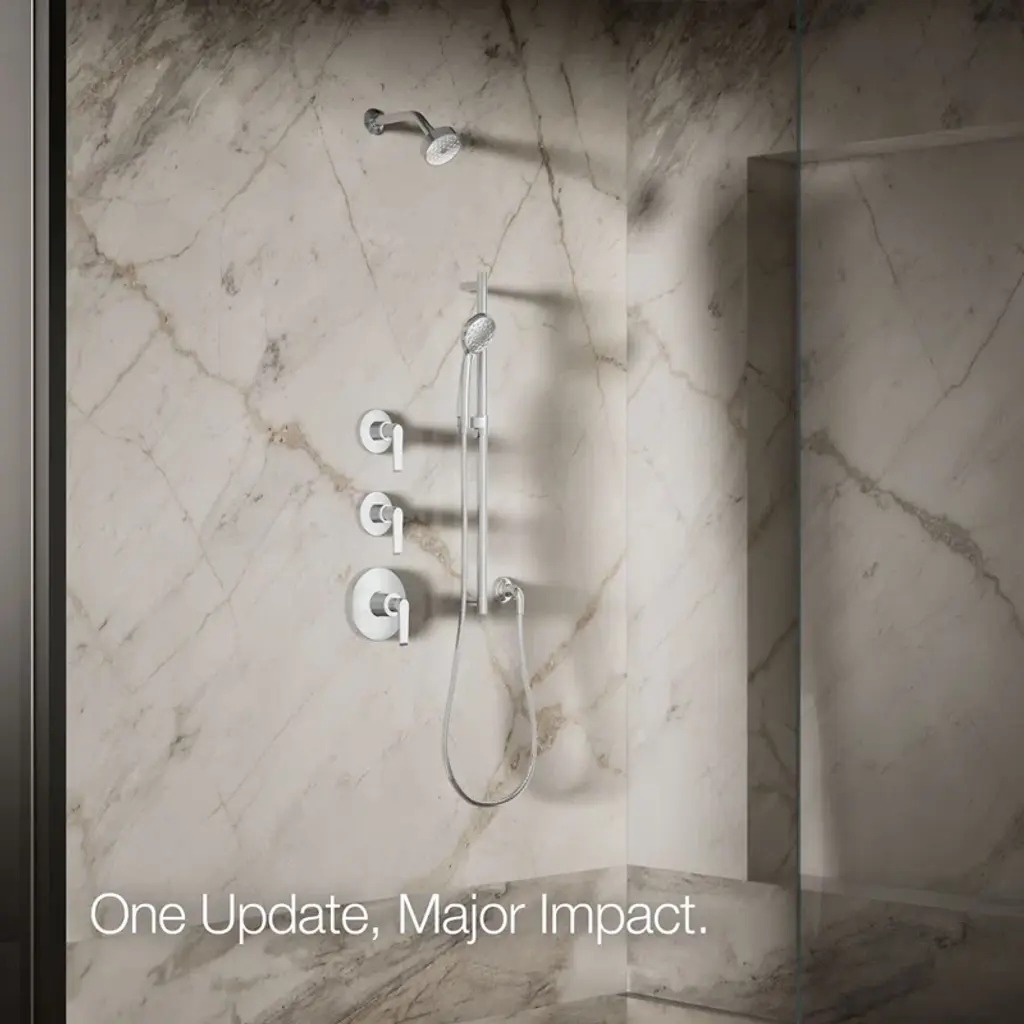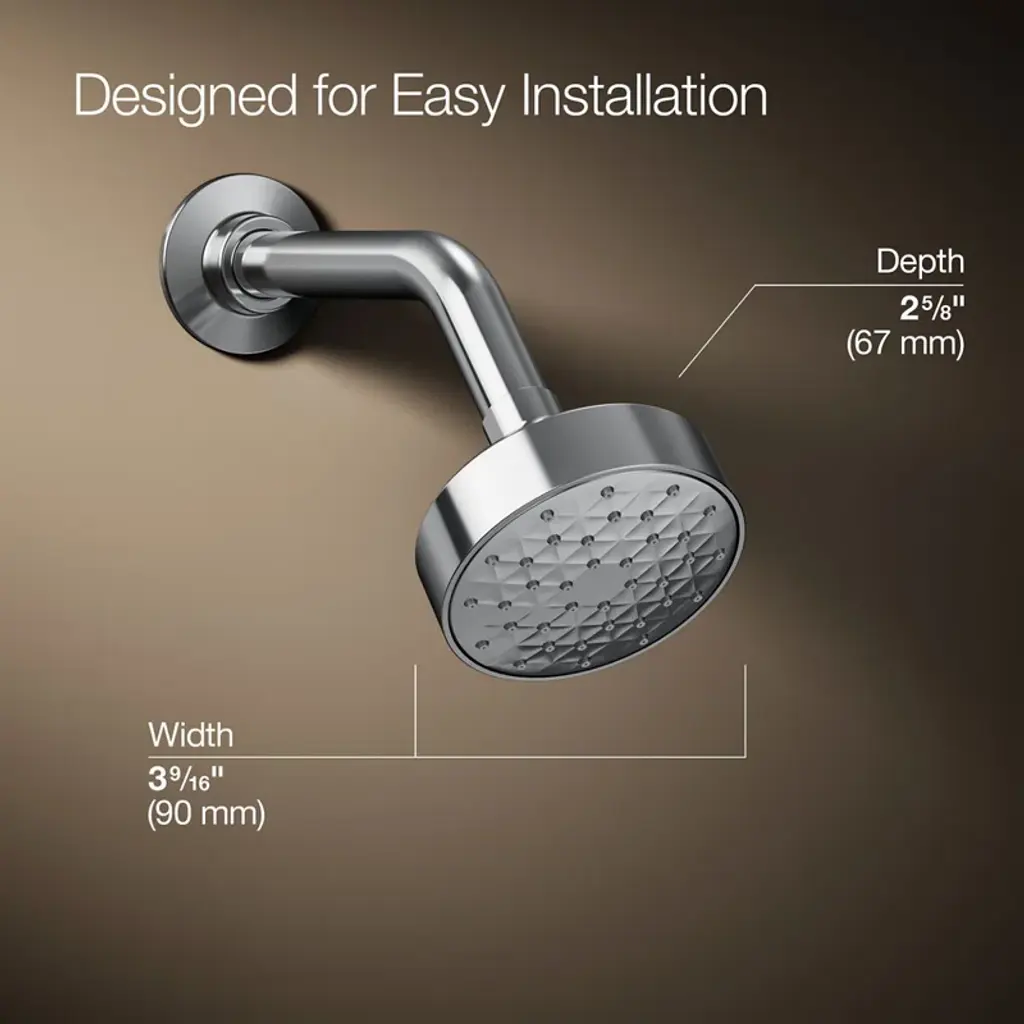 The Awaken showerhead brings Kohler® quality, design, and performance to your bath. An advanced spray engine provides wide coverage and thorough rinsing. The artfully sculpted spray face reveals simple, architectural forms that complement contemporary and minimalist baths.