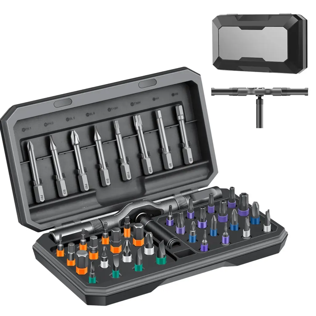 Featuring heavy-duty titanium pilot points that start on contact and helps to prevent walking, the DEWALT [Tool or Family Name] includes commonly used bits for a range of metal and wood-drilling applications. No-spin shanks helps to prevent bits from slipping, and a tapered web delivers helps to increased durability to helps to reduce breakage. A durable carrying case keeps bits organized and ready to go.