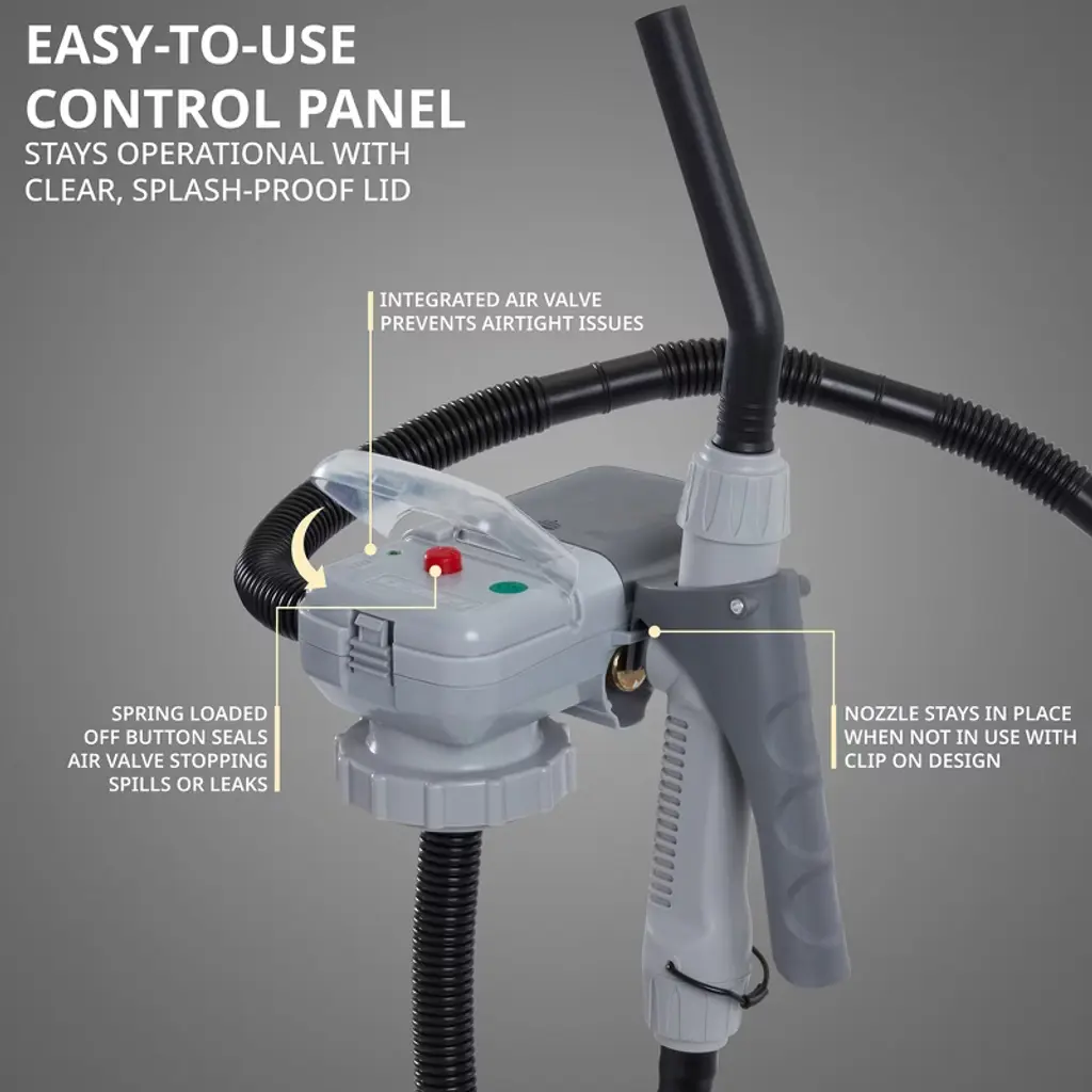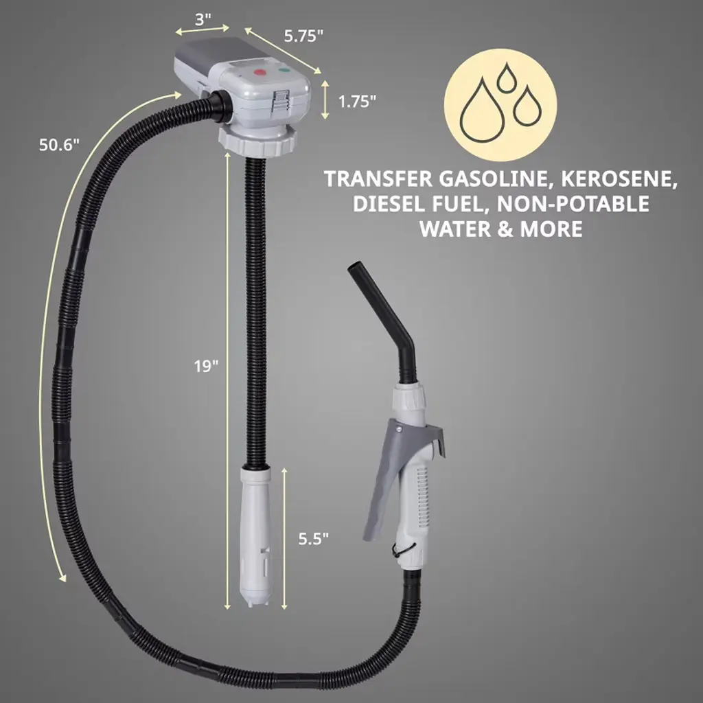 The greatest fuel-powered tools deserve the best fueling system. Treat your tools right with the DeWay™ Attachable Battery-Powered Gasoline Transfer Pump with Nozzle. Pump non-corrosive liquids in your equipment with the DeWay™ Battery-Powered Liquid Transfer Pump. This fluid pump works with several types of machine-powering liquids like gasoline, kerosene, and diesel. The long, flexible hose makes siphoning liquids easy and comfortable. The integrated nozzle is user operated so you are in complete control of when the flow starts and stops. Simply press one button to power up the pump and control your fueling process with the nozzle. And with the attachable construction that enables you to screw the fluid transfer pump onto a tank, you never have to worry about spills or instability. The battery powered fuel transfer pump is portable, lightweight design makes it easy to use wherever you need. Made from durable, high-quality plastic, this pump is built to last and is a reliable part of your toolkit. Your tools help you get the job done right. Fuel them up right with the DeWay™ Attachable Battery-Powered Portable Fuel Pump with Nozzle.