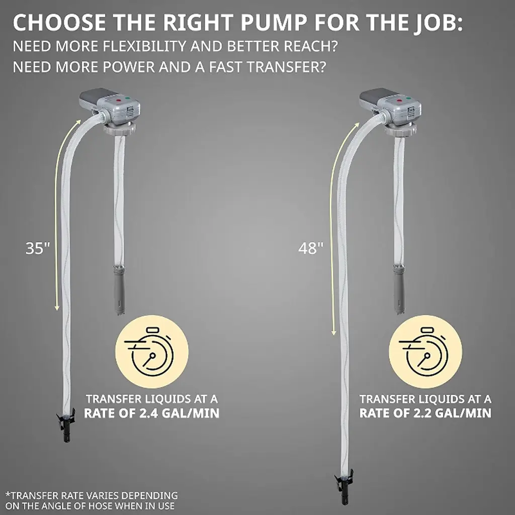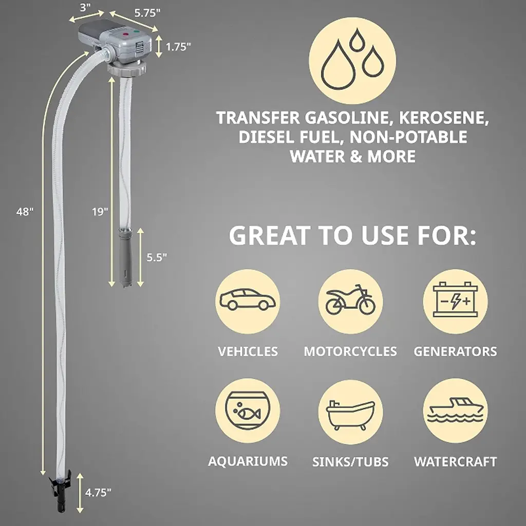 The greatest fuel-powered tools deserve the best fueling system. Treat your tools right with the DeWay™ Attachable Battery-Powered Gasoline Transfer Pump. Pump non-corrosive liquids in your equipment with the DeWay™ Attachable Battery-Powered Liquid Transfer Pump. This fluid pump works with several types of machine-powering liquids like gasoline, kerosene, and diesel. The long, flexible hose makes siphoning liquids easy and comfortable. And with the attachable construction that enables you to screw the fluid transfer pump onto a tank, you never have to worry about spills or instability. The battery powered fuel transfer pump is portable, lightweight design makes it easy to use wherever you need it. Made from durable, high-quality plastic, this pump is built to last and is a reliable part of your toolkit. Your tools help you get the job done right. Fuel them up right with the DeWay™ Attachable Battery-Powered Portable Fuel Pump.