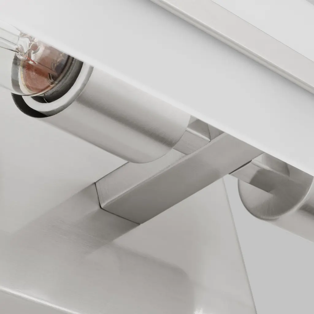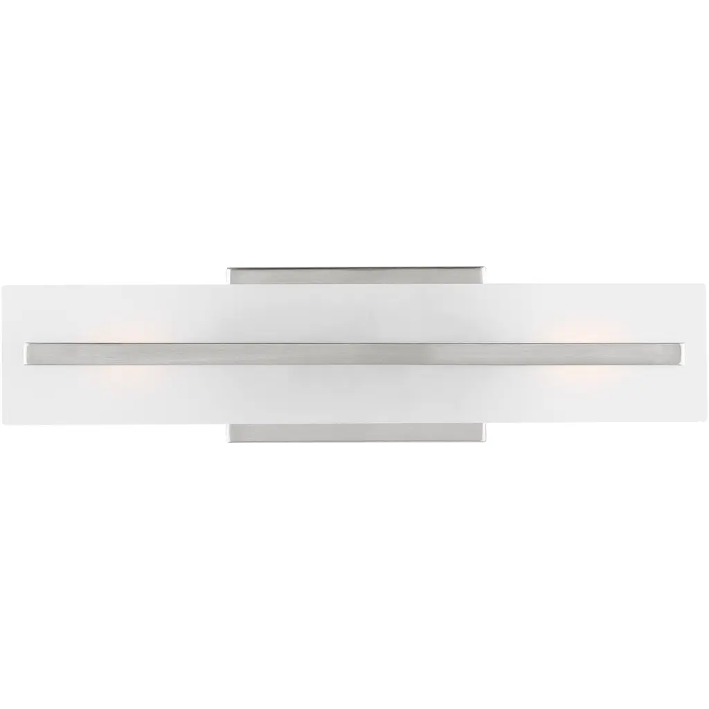 The Dex two light vanity fixture in brushed nickel silver is a contemporary design with three finishes and white acrylic diffuser creating a crisp look and bright clean ambiance. With the clean lines and classic styling, the Dex vanity series is versatile enough to be used in any transitional setting. Dex is an ENERGY STAR½ qualified.