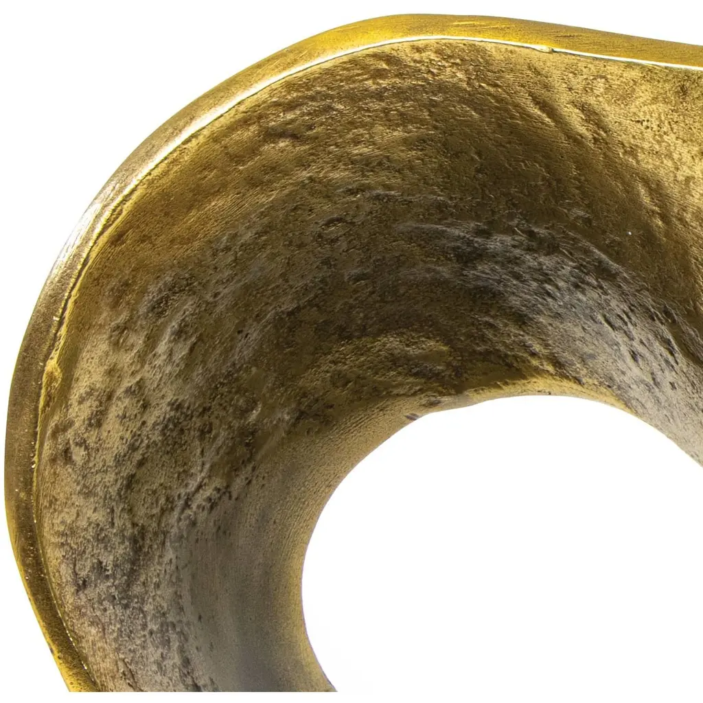 An infinity knot was crafted out of aluminum and cast to capture a textured surface. This object is an industrial work of art. Place on a bookshelf in a living room for a sculptural statement.