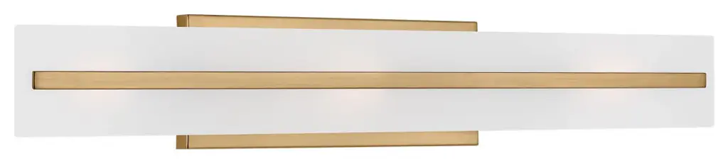 The Dex three light vanity fixture in Satin Brass is a contemporary design with three finishes and white acrylic diffuser creating a crisp look and bright clean ambiance. With the clean lines and classic styling, the Dex vanity series is versatile enough to be used in any transitional setting.From the brand formerly known as Generation Lighting LightingModern damp rated fixture for powder room and bathroom applicationsAll hardware included for easy horizontal or vertical installationUses (3) 60-watt medium base light bulbs sold separatelyNumber of Bulbs: 3Bulb Type: T10Bulb Wattage: 60Bulbs Included: No