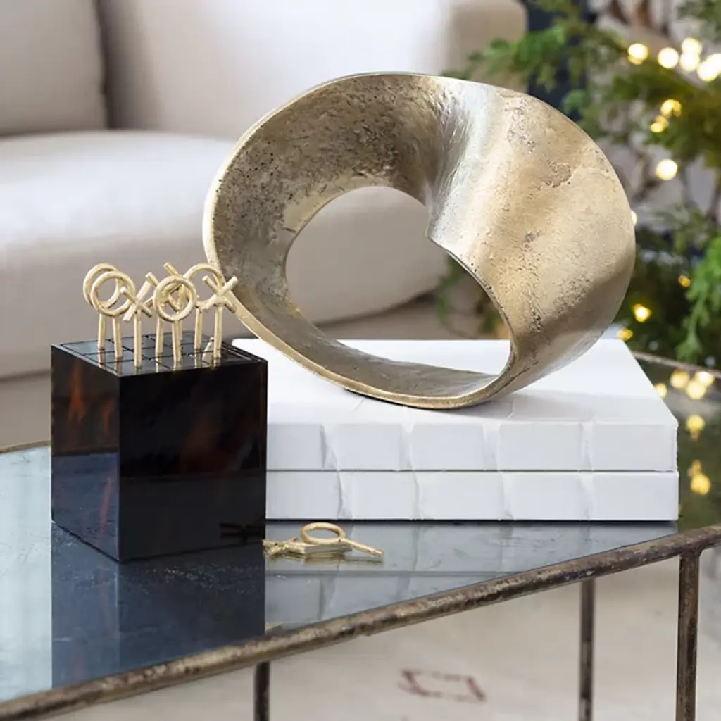 The Dex Objet by Regina Andrew creates intrigue when placed amid your home décor. This work of art is composed of aluminum and is defined by its nebulous, wending contours. The Dex Object will be a fixture which generates speculation from your guests, as this decorative piece is not fully ring-shaped as its framework may, at first glance, suggest.