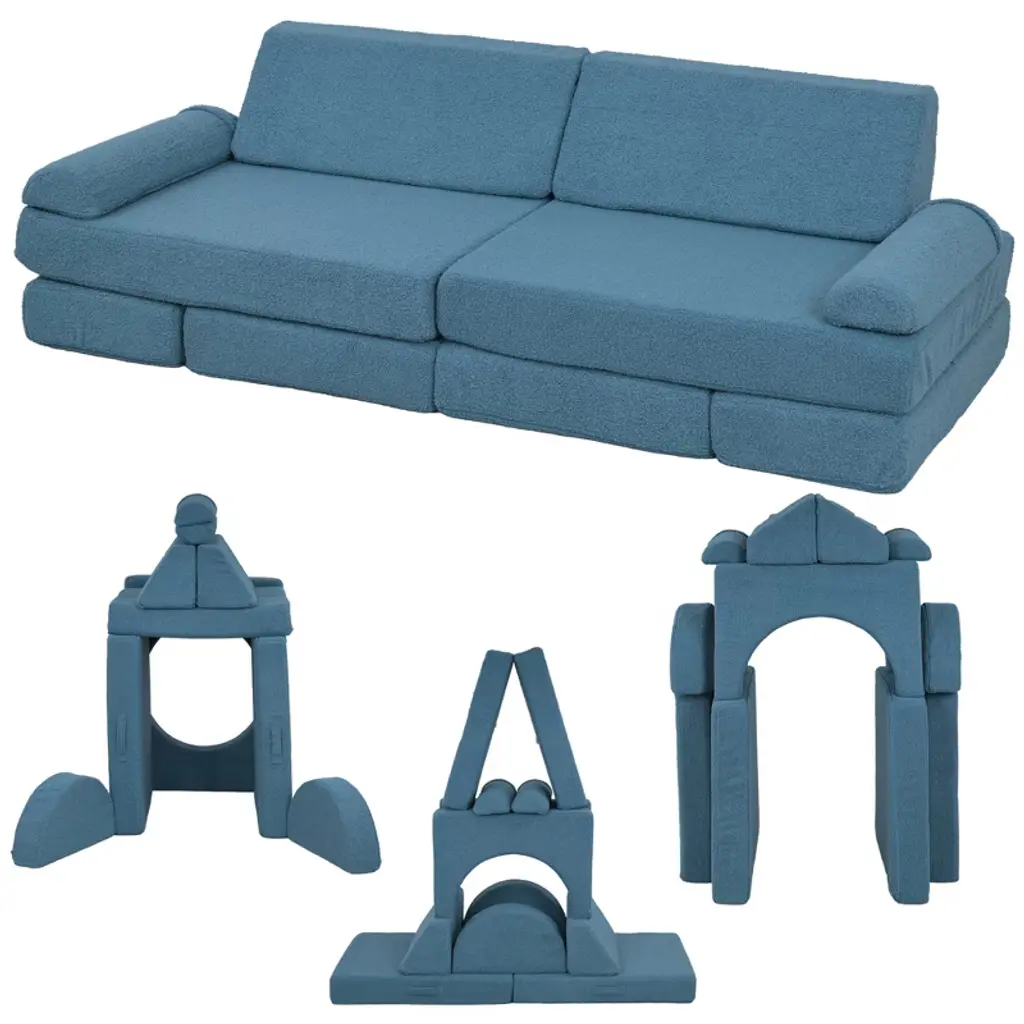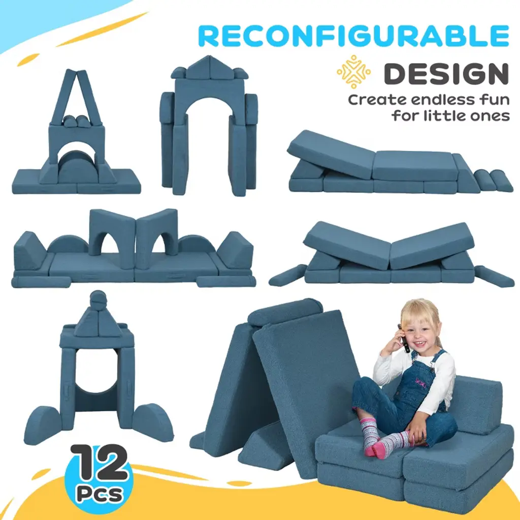 This toddler play couch comes in 12 pieces with four different shapes, allowing children to build cars, castles, rockets, and more, enhancing their creativity and motor skills. Toddlers Couch Child Sectional Sofa, Playroom Bedroom Furniture for Boys and Girls, Blue