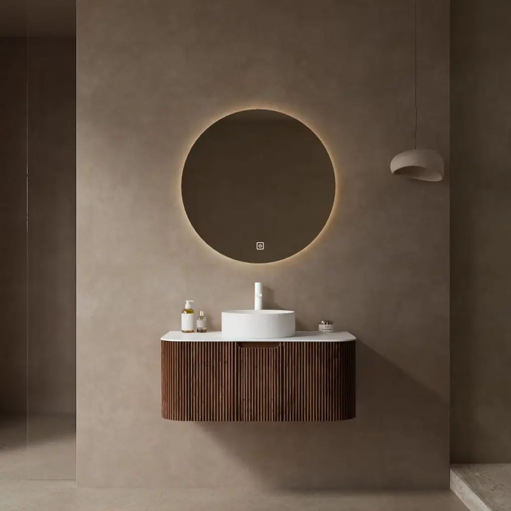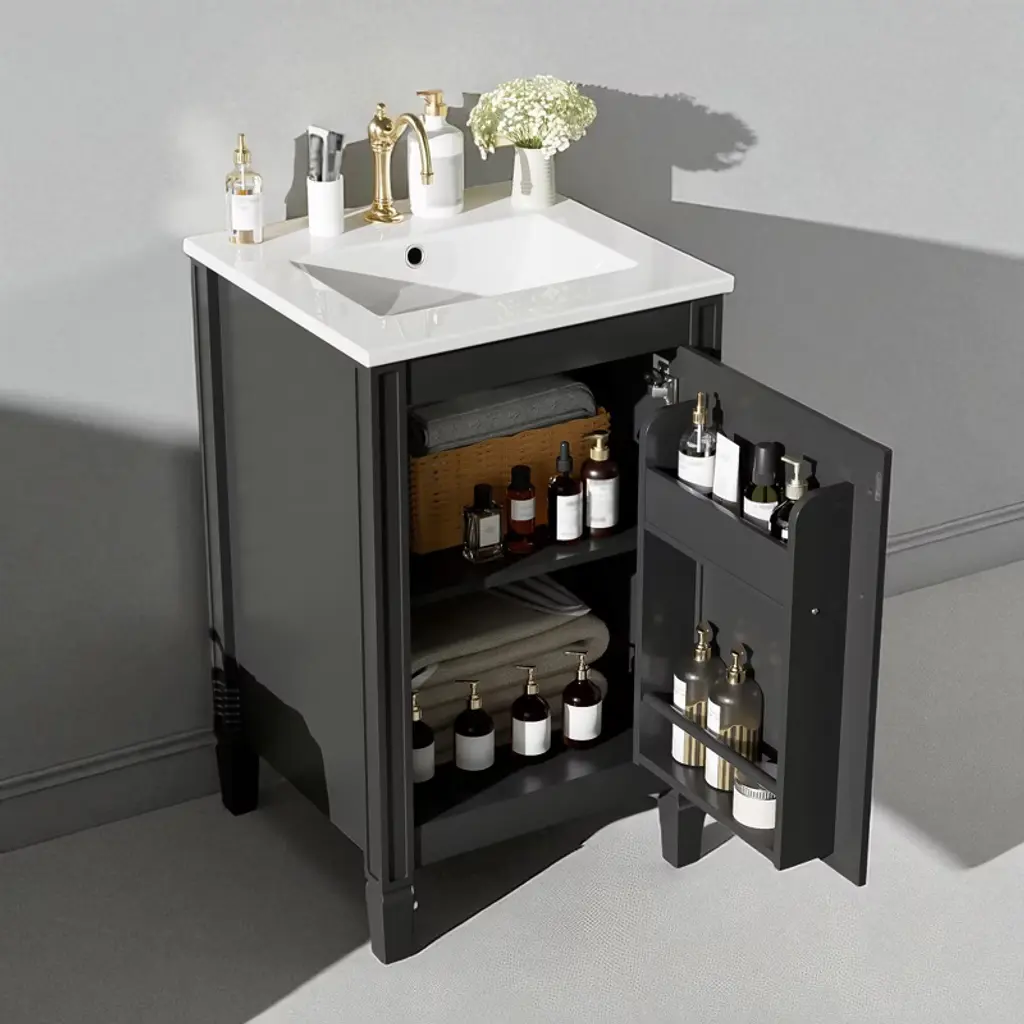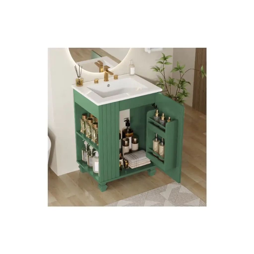 Hardness Ceramic Basin and Countertop 14 Inch glossy white round ceramic vessel sink above counter, with excellent durability and stain resistance. This basin is made of strong hardness ceramic, with excellent durability and stain resistance, easy to maintain, standing up to long-term use. This vanity tops is made of premium artificial marble, with excellent superior water resistance and moisture resistance. Please be noted that faucet mounting hole size :1.38'', the height of faucet spout ≥9'' is recommended. 3D Striped Finish of Durable Plywood Cabinet The dark walnut wood grain of the drawer panels featuring 3D French-style striped designed and solid wood finger-jointed panel grooves to prevent surface deformation and makes it elegant and durable. We also brushed the natural wood wax oil to make the surface of the panel more natural, waterproof and stable. *Please noted that the cabinet panel may have different color and grain pattern under the different light. Ample Storage Space and Soft Close System The drawer system features HDT full extension undermount drawer slides, which are sturdy and load-bearing. The soft close damping silent system for smooth and stable operation of the drawer, creating a warm and quiet environment for you. Easy to Install The cabinet of this bathroom vanity is already assembled and comes with a detailed installation manual. In just a few simple steps, you can complete the installation smoothly.