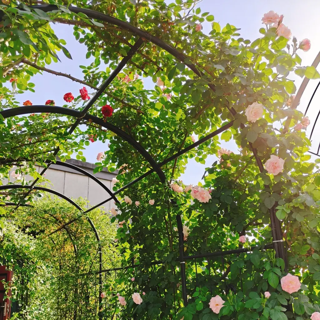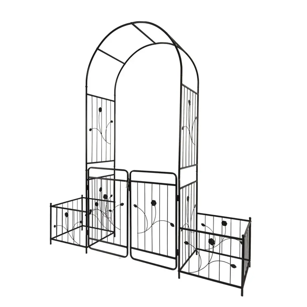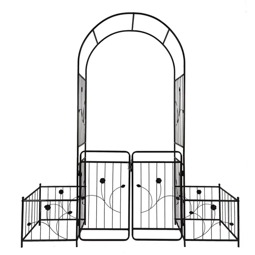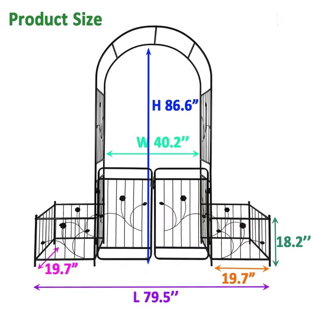 Nice Design: 86.6'' High x 79.5'' Wide. The double gate design of this garden arbor gives a sense of privacy in your garden. With two side planter stands, you can grow flowers directly beside the arch or put flower pots in the stands.