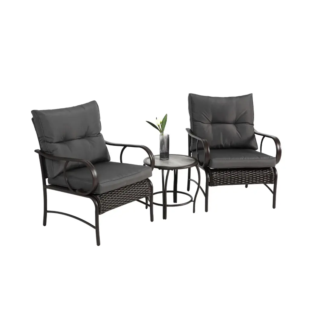 Dexmalle Patio Coffee Table And Wicker Rattan Chair,set Of 3