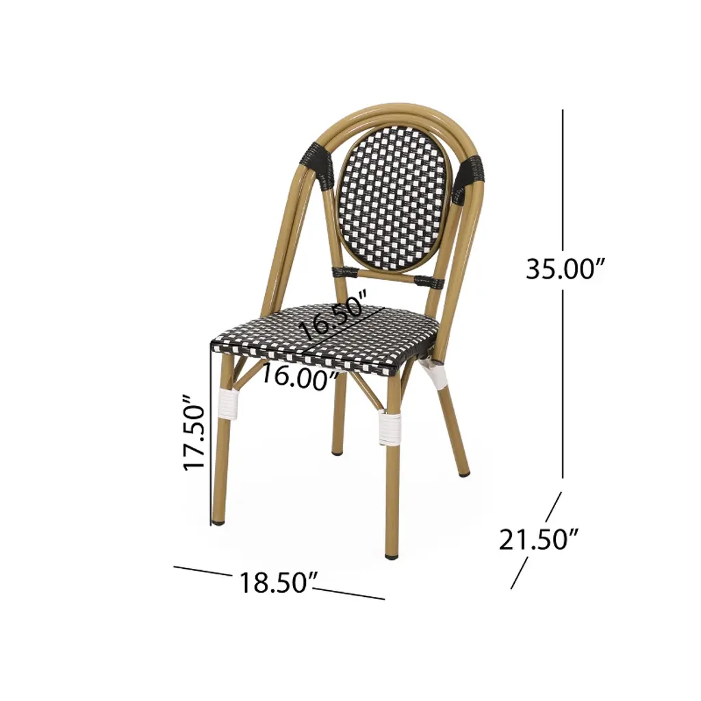 This chair set is built with aluminum, creating a lightweight and stable frame. This material is rust-resistant which will further extend the life of your product. This is finished with a bamboo print finish to give this set a natural look.