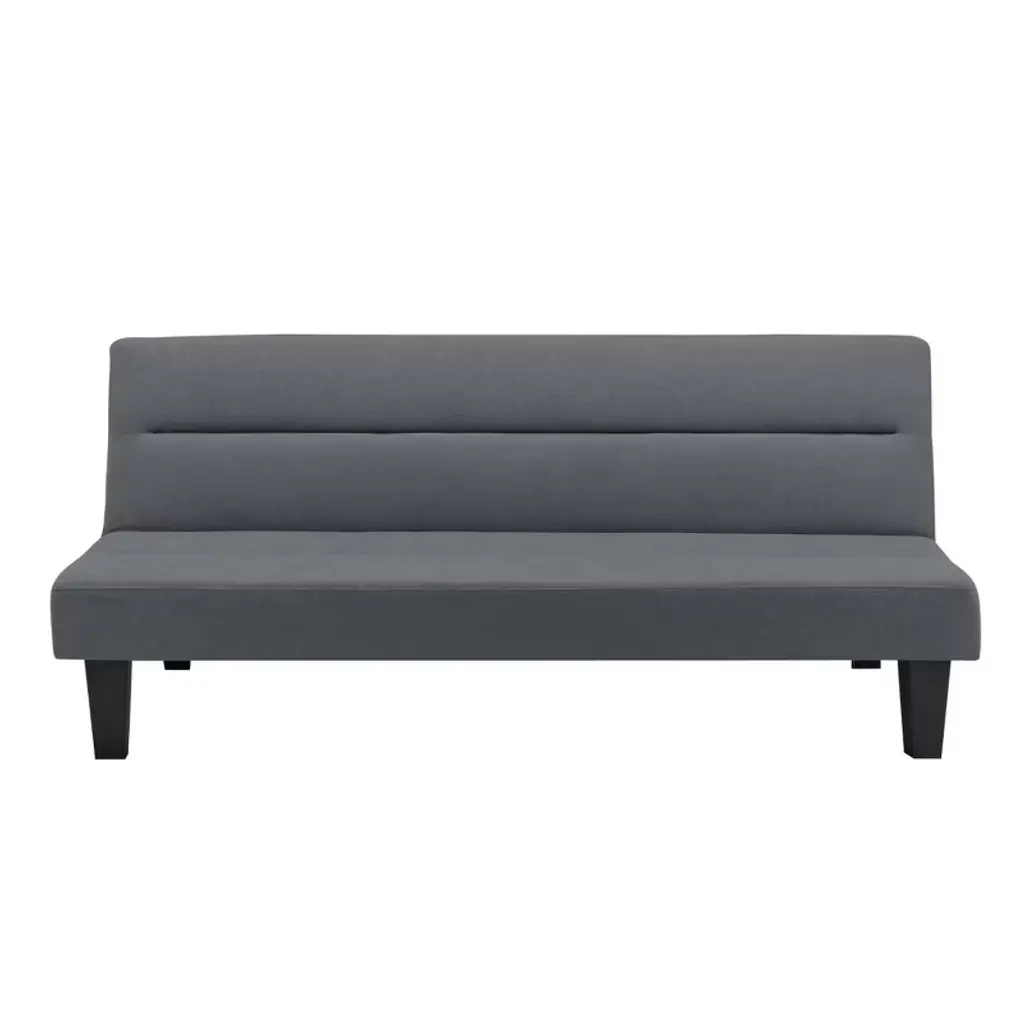 Simple and sophisticated--that's exactly what you get with this versatile Kebo futon from DHP. Its minimalistic design with sleek lines and a microfiber finish matches any décor, and the lightweight futon frame makes it simple to move from room to room and even up and down stairs. Plus the padded feet will keep your floors protected from scuffs and scratches for years to come! Sit back to complete comfort when you read, watch your favorite movie or enjoy time with friends and family. Or use the easy mechanism to lounge back or lie down flat--perfect for overnight guests, extra sleeping space in the den or a more grown-up bed for your teen's room. This modern futon is available in black, charcoal, red, navy, and brown, and can be enhanced to match your style by adding decorative pillows and throws. Material: Wood, Foam, Polyester Fiber, Metal, Plastic Dimension of Sofa: 32" x 69" x 29" (L x W x H) Dimension of Bed: 38" x 69" x 14.5" (L x W x H) Backrest Size: 18" x 69" (L x W) Thickness of Seat: 6.5" Height from Ground to Seat: 14.5" Net Weight: 53 lb. Weight Capacity: 600 lb. Package Includes: 1 x Sofa Bed 1 x Instruction