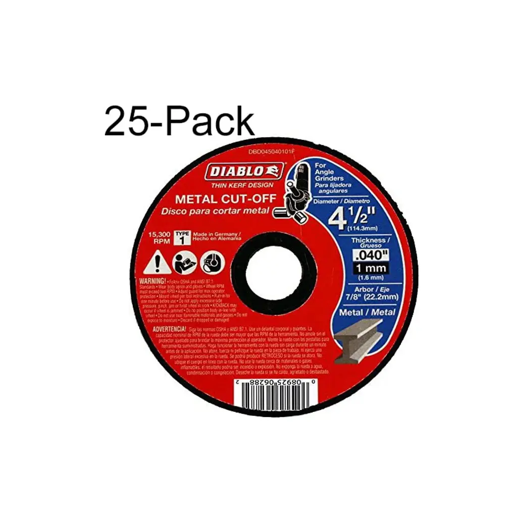 Diablo Dbd045040125f 4-1/2" Thin Kerf Metal Cut-off Discs (25-pack)