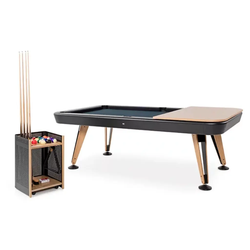 The Wooden Top for Diagonal Pool Table by RS Barcelona brings a functional layer to the Diagonal Pool Table by transforming it into a simple table. Covering the cloth, pockets, and structure of this playful piece, three pieces slot together to tuck gametime away and create a surface to gather around. Easy to set up and easy to store, this beautifully finished top matches the splayed legs that support the Diagonal Pool Table, so it looks good no matter the occasion.