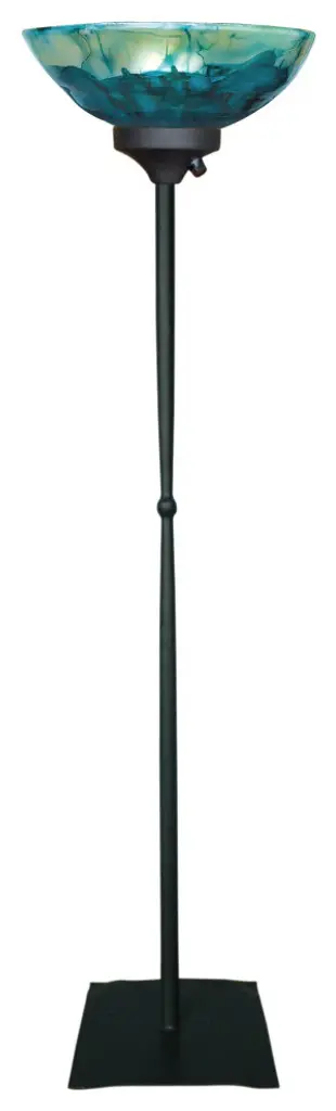 Smooth, yet dramatic, our Diamond torchier speaks of power, and worth. Let there be light! Crowned with a blown glass shade it includes a three way switch..60 watt bulb recommended