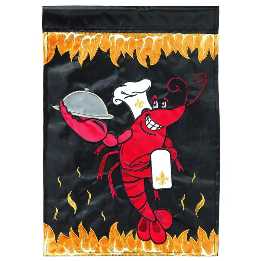 These decorative garden flags that are designed with a mixture of double applique fabrics and exquisitely detailed embroidery are the perfect way to celebrate this season; Features a seafood boil dinner and reads 'Let the good times boil'. Crafted from 300 Denier Polyester which is heavier and more durable than most others on the market; Double applique fabrics are either satin-smooth or a burlap texture, sometimes a combination of both. Large flag measures approximately 29 x 42 inches; Double sided design for viewing at any angle. Flag is rainproof and will retain it's beauty for years if displayed in shade or semi-shade; Flagpole sold separately. Contained in protective packaging; Ready for easy gifting for any celebration