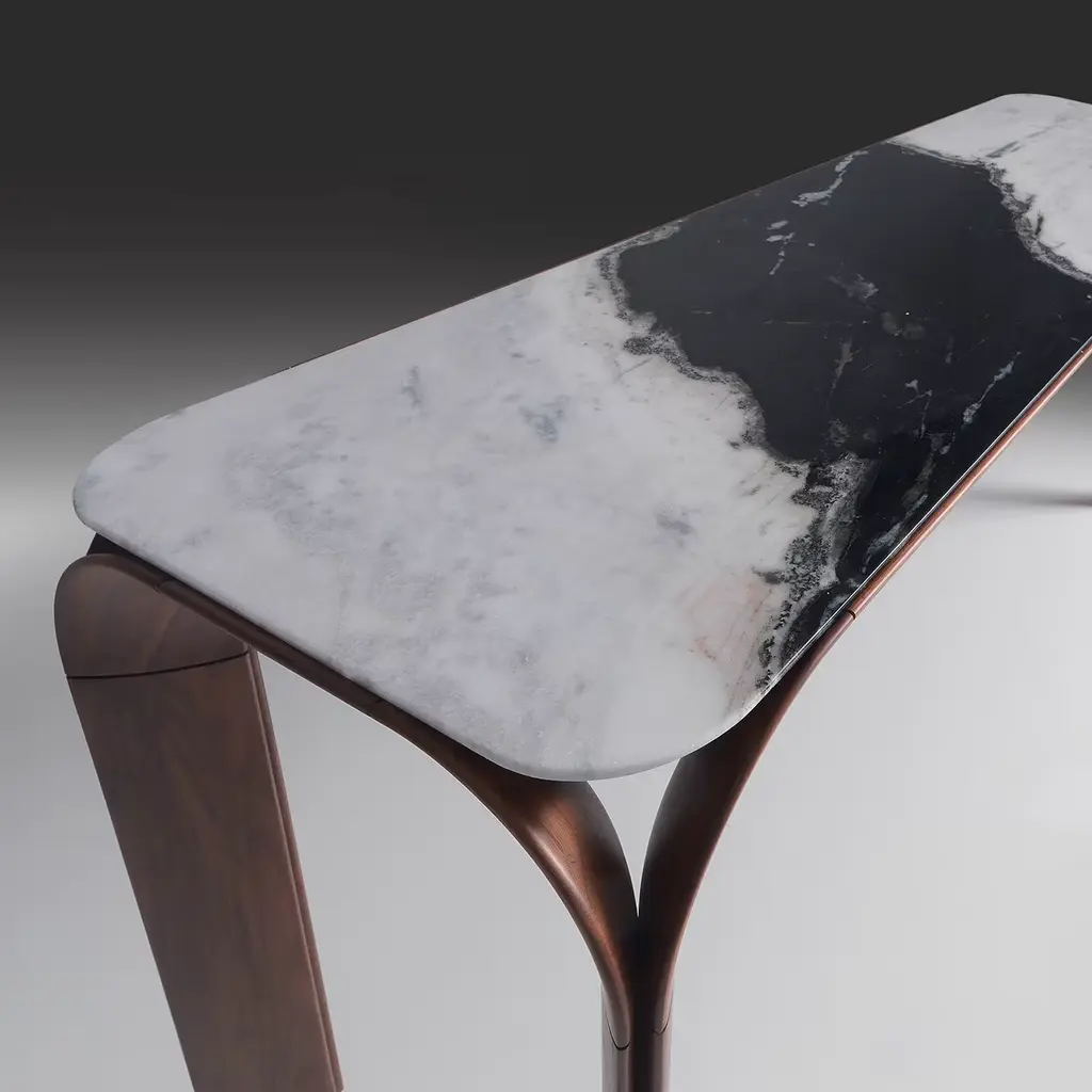 Named after the classic mythological female founder of Carthage, this stupendous Console will make for a sophisticated accent to a contemporary-style entryway decor. Handmade of Canaletto walnut, it boasts a sleek top in first-rate Dalmata marble. Available with a wooden top upon request, please contact the Concierge for further information.