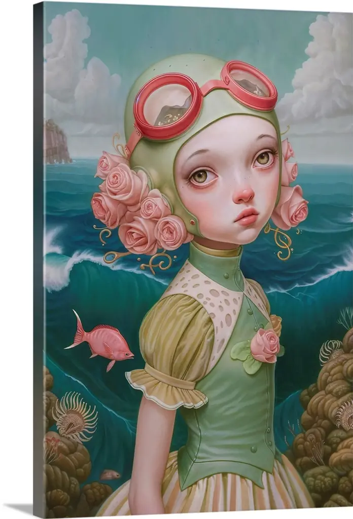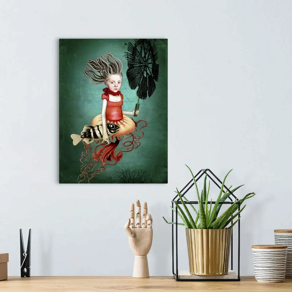 The Little Sea Witch. A creature that appears to be half girl, half squid, is holding a fish and windmill.