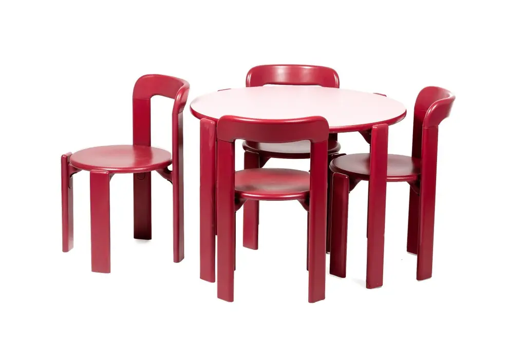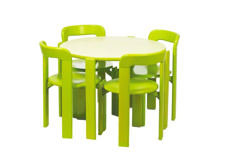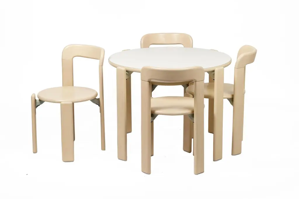 This is the children furniture collection based on the famous Rey chair that was designed in 1971.The Rey Junior set includes 4 chairs + 1 table in Arik Levy Fresh Light 2 Blue color.Designed by Bruno Rey, the Rey chair is famed internationally for its elegance and style. Like the original, the Junior edition is constructed with Dietiker’s patented screwless wood-to-metal connection.The solid execution and rounded edges are perfectly suited for children.The chair and table are made with care from solid beech wood, with die cast aluminum consoles and plastic glides. The chair and table legs are of solid wood. The tabletop is in HPL. The chairs stack up to 4.- rounded edges for children safety- timeless design- unique screwless patented wood-metal connection- Rey Junior chair load test for 175lbs as per ANSI/BIFMA - Rey Junior table ANSI/BIFMA certified - forest sustainability FSC beech wood certification- contract grade- chairs stacks up to 4Chair dimensions:23" H × 13.5" W × 15.7" DSeat height 13.3"Table dimensions:- Diameter 27.55”- Height 20.5”Also available in the following colors:- Arik Levy Soft Acid 3 Green- Maple Beech- Candy