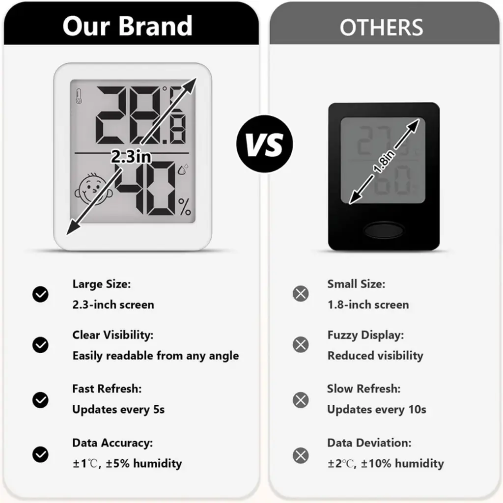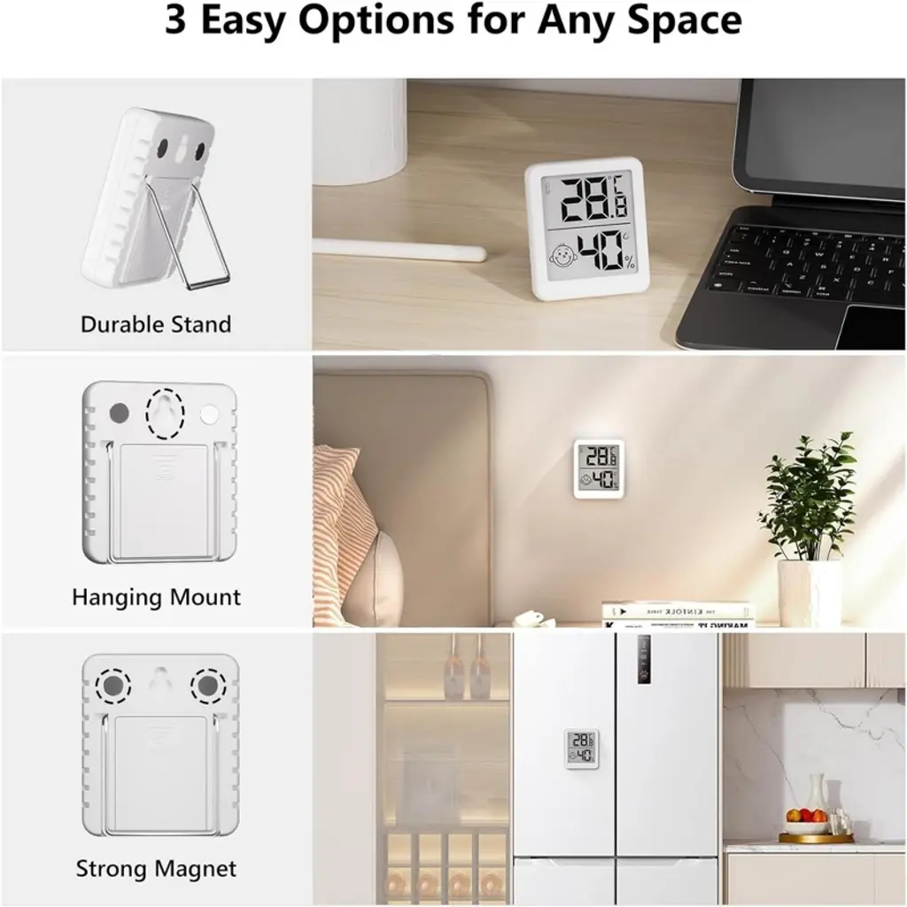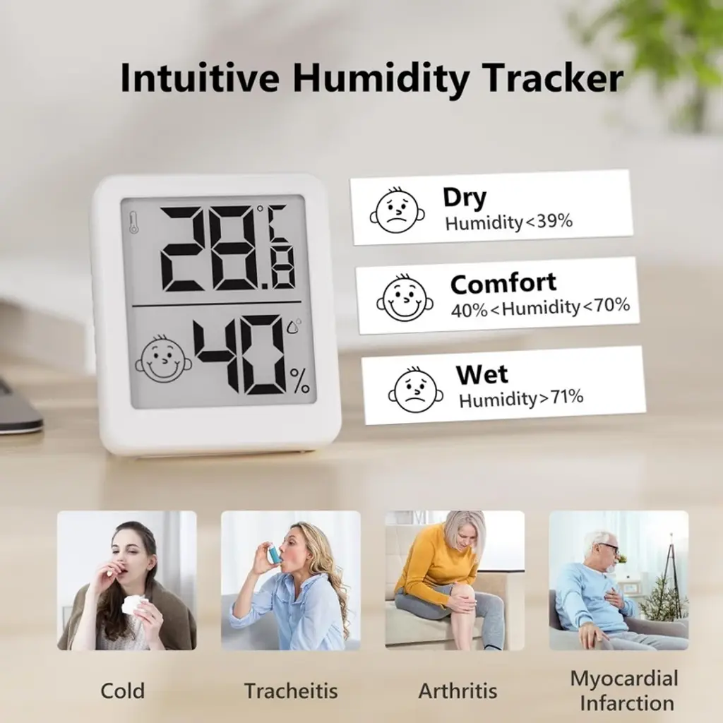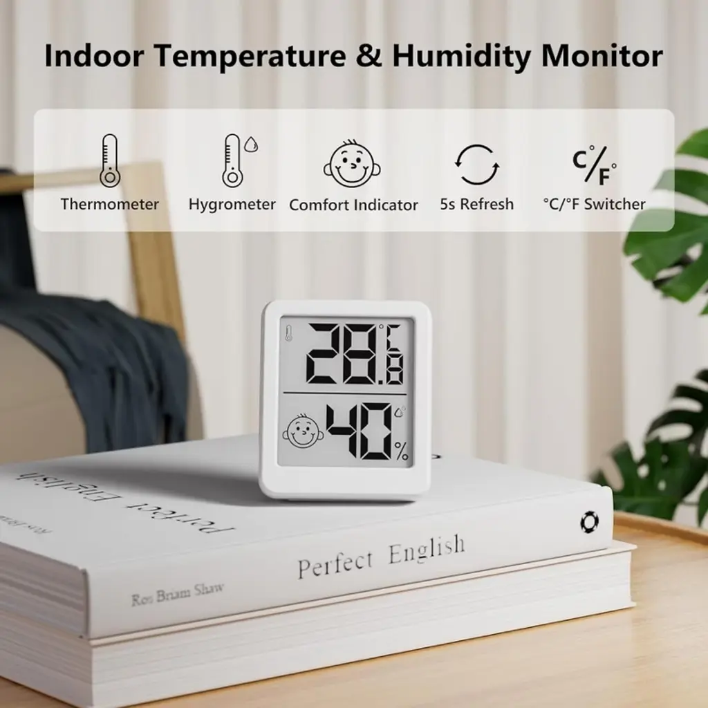Bring comfort and clarity to your living space with the Digital Hygrometer Indoor Thermometer. Designed with a precise sensor this tool helps track temperature and humidity to support a balanced environment. The comfort indicator display shows easy to read icons that signal air conditions at a glance. Its compact design with bold numbers ensures quick viewing while versatile placement options make it suitable for bedrooms kitchens greenhouses or offices.