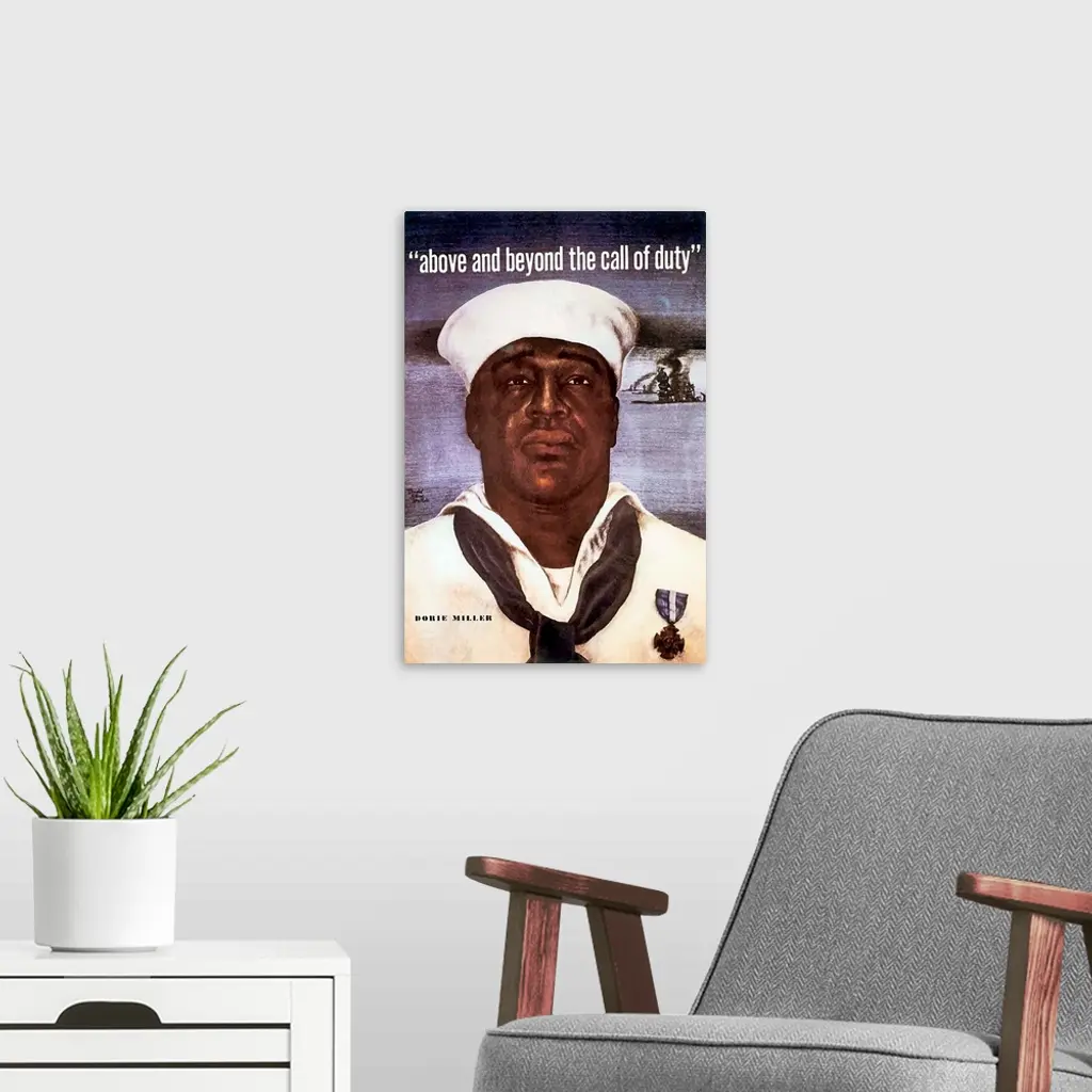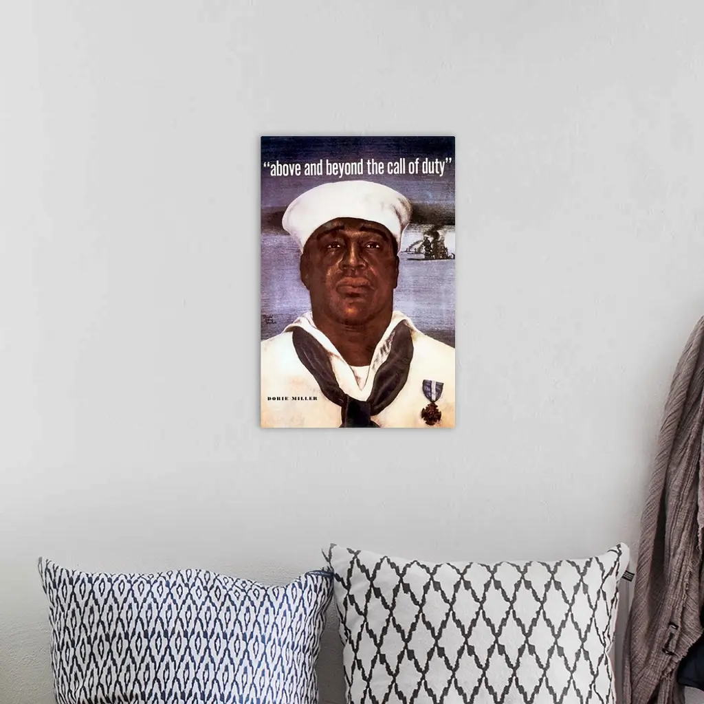 Digitally restored vector image of Doris Dorie Miller, a cook in the U.S. Navy. Doris Dorie Miller was a cook in the United States Navy and the first African American to be awarded the Navy Cross Medal. Miller was awarded the medal for his bravery during the attack on Pearl Harbor. Later in the war, Dorie and 643 others were killed when their ship, the USS Liscome Bay, was torpedoed by a Japanese submarine on November 23, 1943.