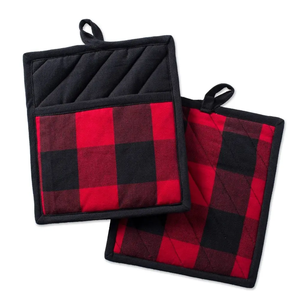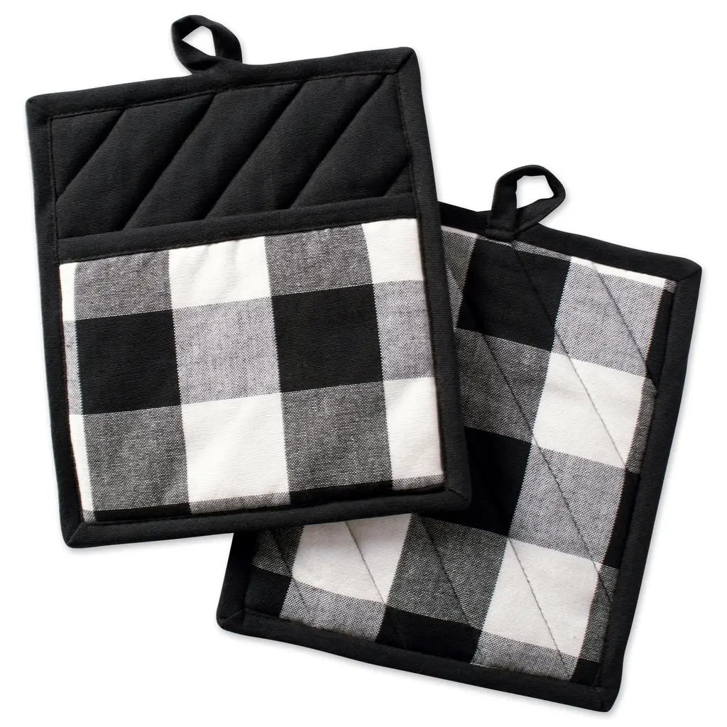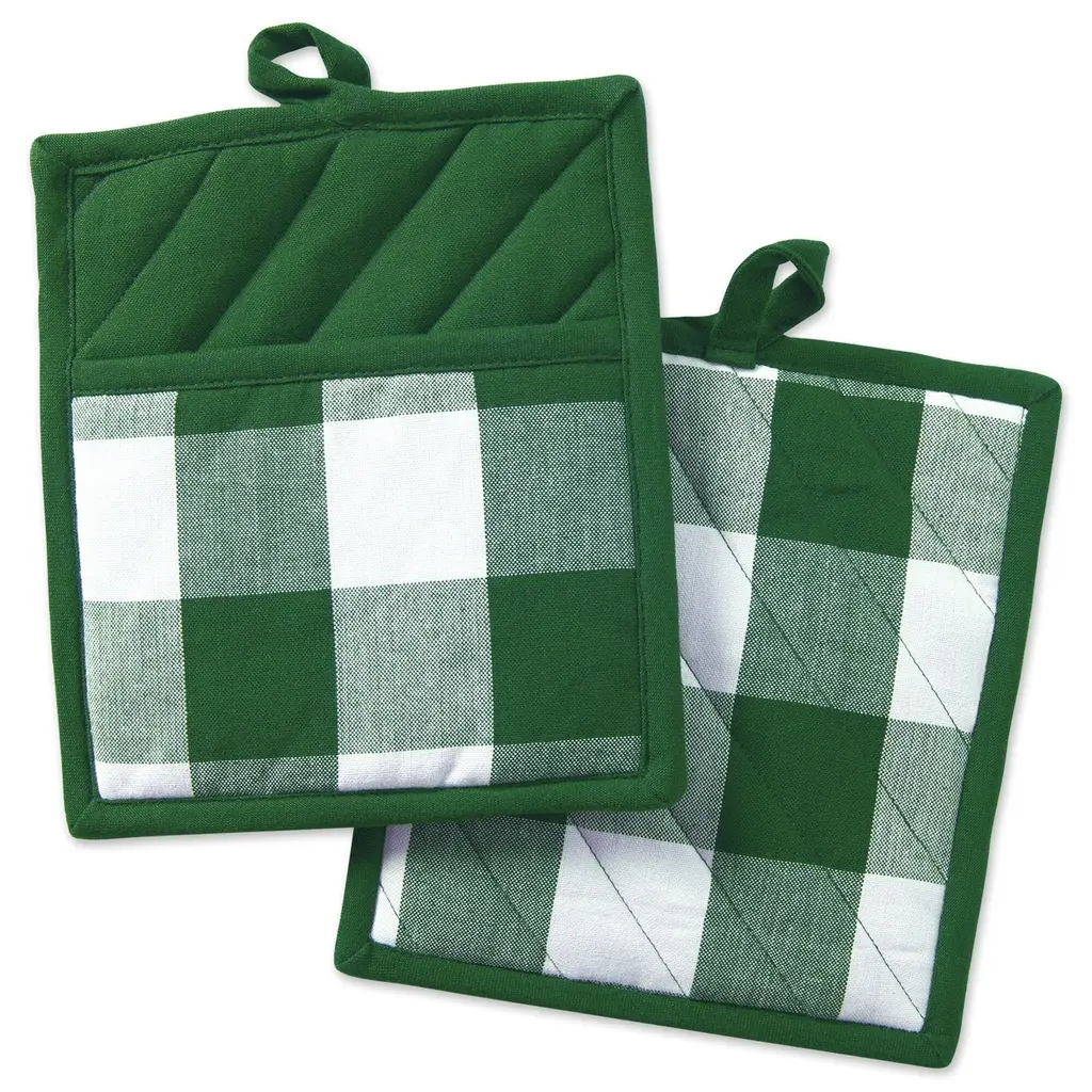 Get a Classic Fashion Kitchen Accessory with DII Buffalo Check Pot Holder SetDII has created these Fashion Buffalo Check Pot Holder to coordinate with your kitchen decor. These Buffalo Check Pot Holders are perfect for cooking, baking, serving, or dinner party, they also make a great gifts for housewarming, Mother’s day, birthdays, Wedding shower or holidays. DII Buffalo Check Pot Holders coordinate well with our Aprons, Dish Towels and Oven mitts in three different colors: red, black and navy to coordinate in your kitchen, simply search DII Buffalo Check. Everyday Kitchen Essential With Enduring DesignPot Holder Set include 2 Pot Holders, each measures 8x9", a great tool in kitchen to protect your from the heat with cooking and baking or use as a trivet to protects your table or kitchen countertops from unsightly burns. Buffalo Check design will never go wrong with any interior designs, you can find it easy to mix and match with your existing kitchen decor.Quality you can rely oDII Oven Mitt and Pot Holder Sets are made of durable and comfortable 100% Cotton, quilted to offer durability and flexibility for a better grip on hot pots. Designed with your safety in mind and to shield hands from heat when cooking and handling hot pots and pans. These kitchen linen sets are heat resistant, protect your hands while handling hot pots, pans, dishes, casserole dishes and more.