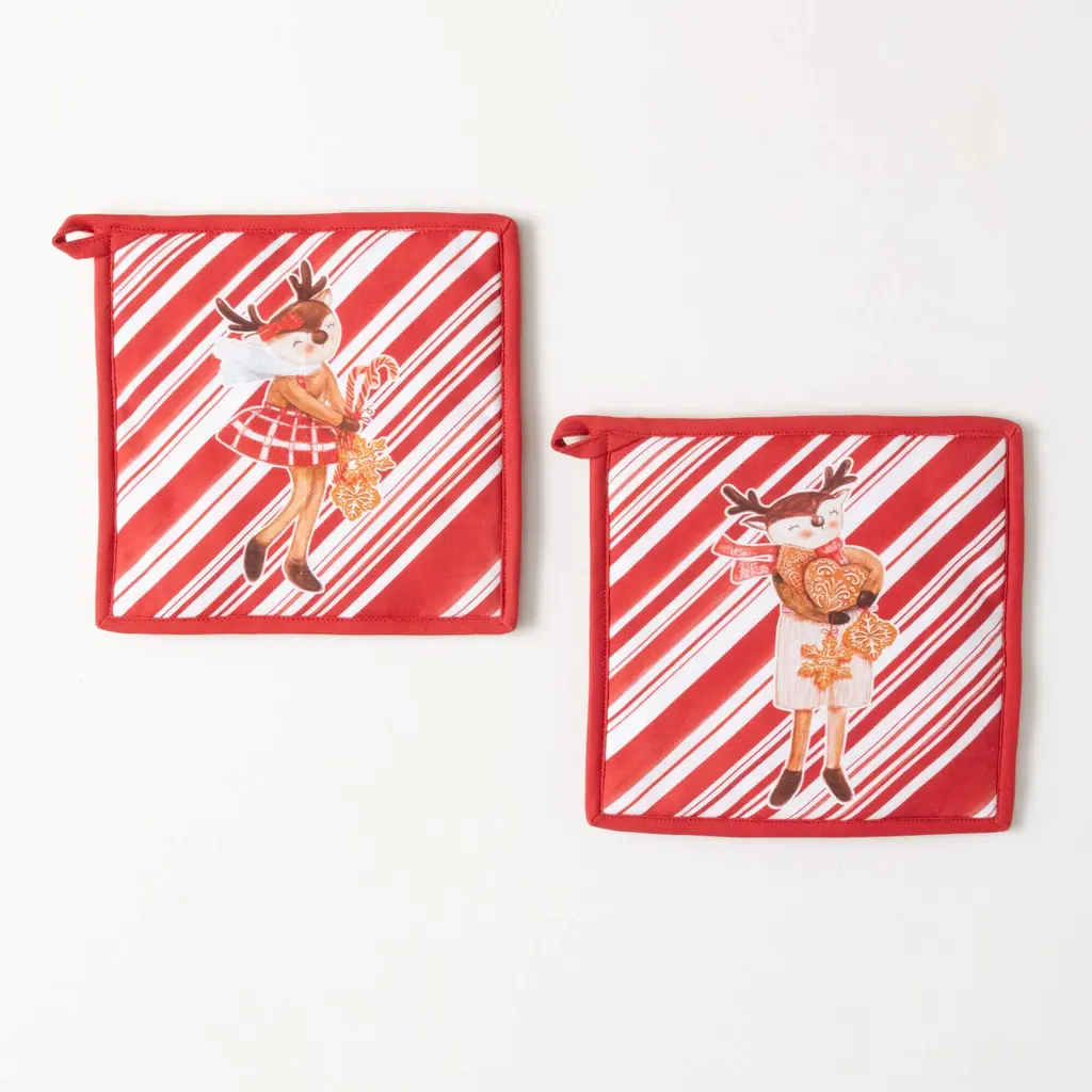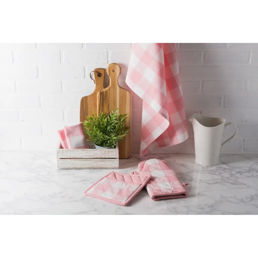 Dii Buffalo Check Kitchen Potholder Set (Set Of 2) - Pink & White