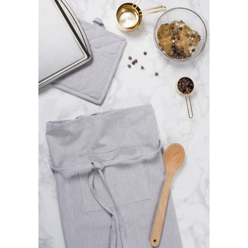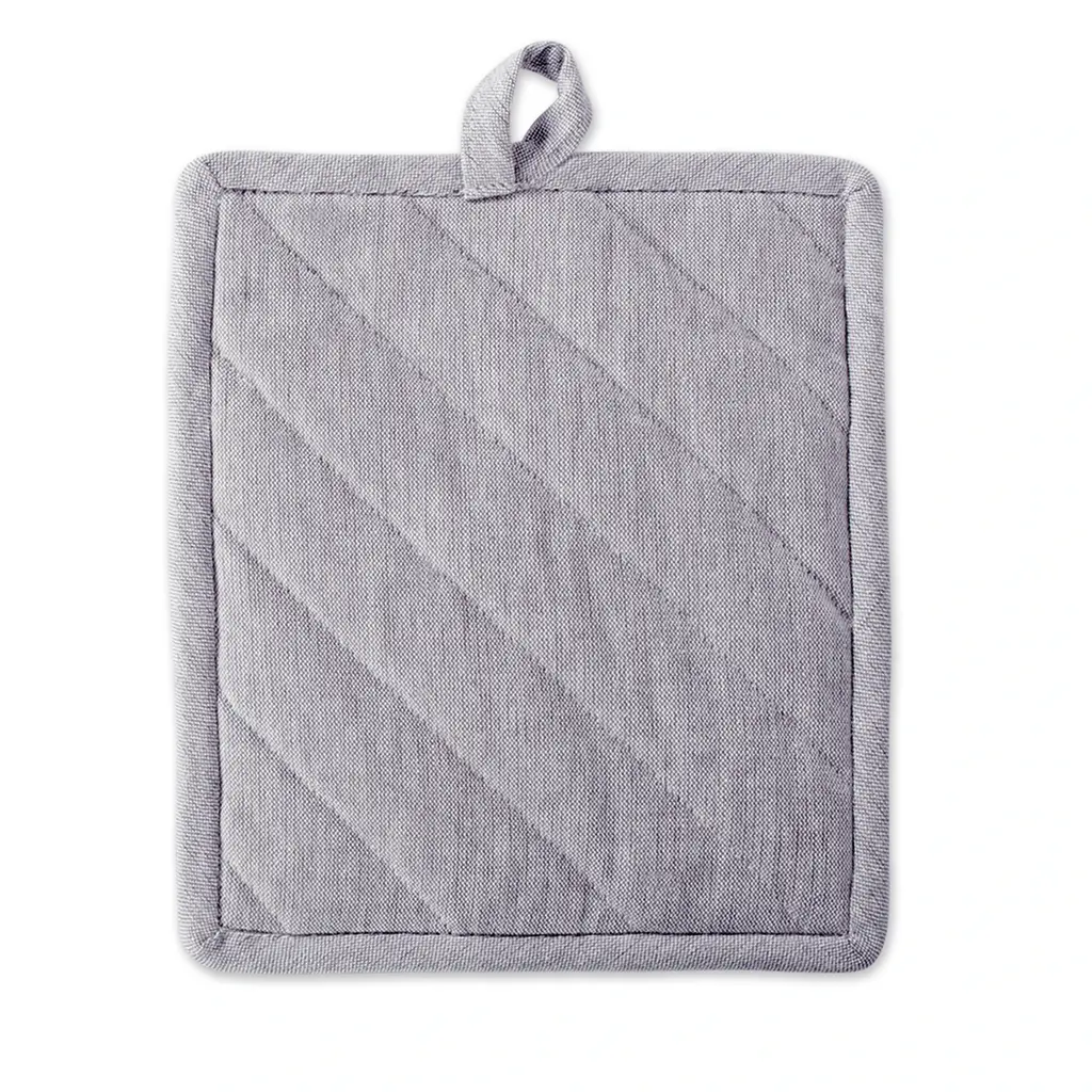 Keep your hands cool when handling hot pots or glass dishware with this DII potholder set. The lovely solid grey color and quilted pattern bring a modern look to your kitchen decor, while the heat-resistant linen fabric protects your table or countertop from unwanted damage.