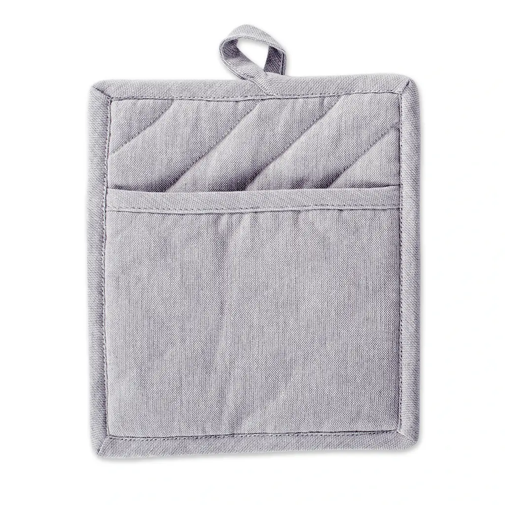 Keep your hands cool when handling hot pots or glass dishware with this DII potholder set. The lovely solid grey color and quilted pattern bring a modern look to your kitchen decor, while the heat-resistant linen fabric protects your table or countertop from unwanted damage.