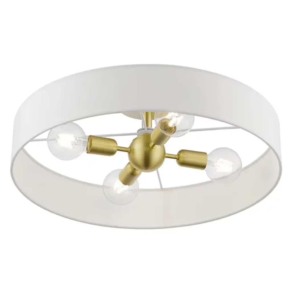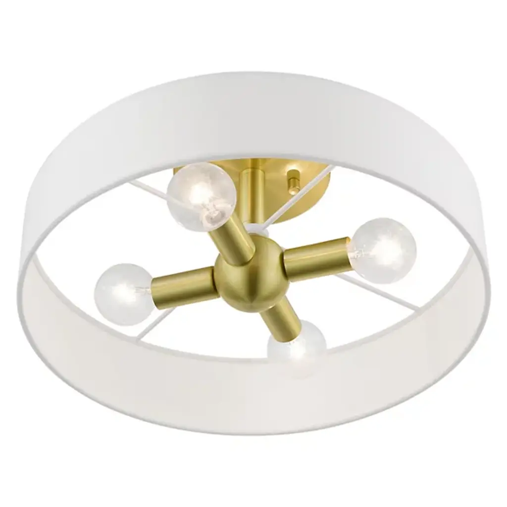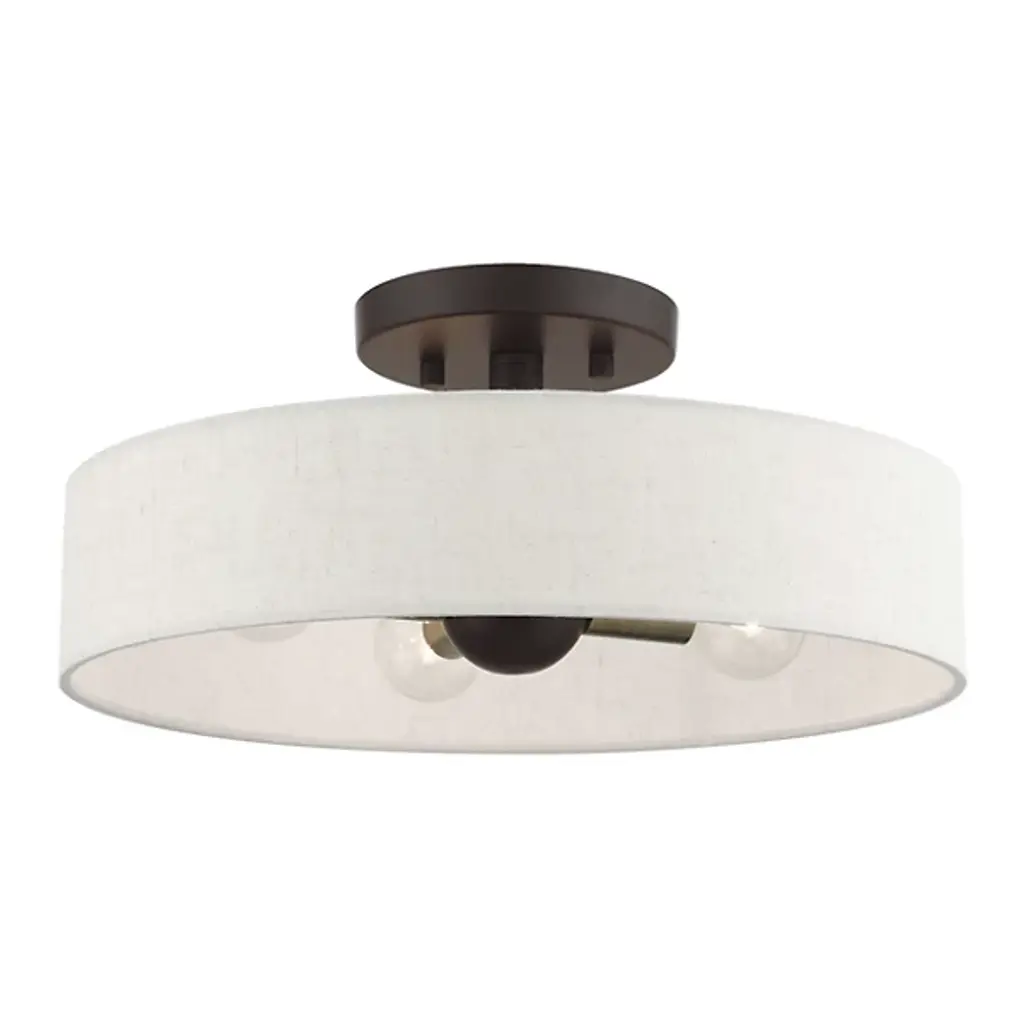 Short in profile, big in charm. The Dimitri Semi Flushmount from Alder & Ore is transitional lighting with a distinct personality. This design’s tidy composition serves as a natural addition with plenty of home stylings. While versatile in aesthetic, the piece’s low-sitting structure makes it a great addition to short ceilings. A hardback fabric drum shade creates an elegant halo silhouette around the light source. The shade’s wide opening puts in clear view the charming bulbs sitting horizontally inside. The bulbs face in opposite directions to produce a warm, room-filling glow.