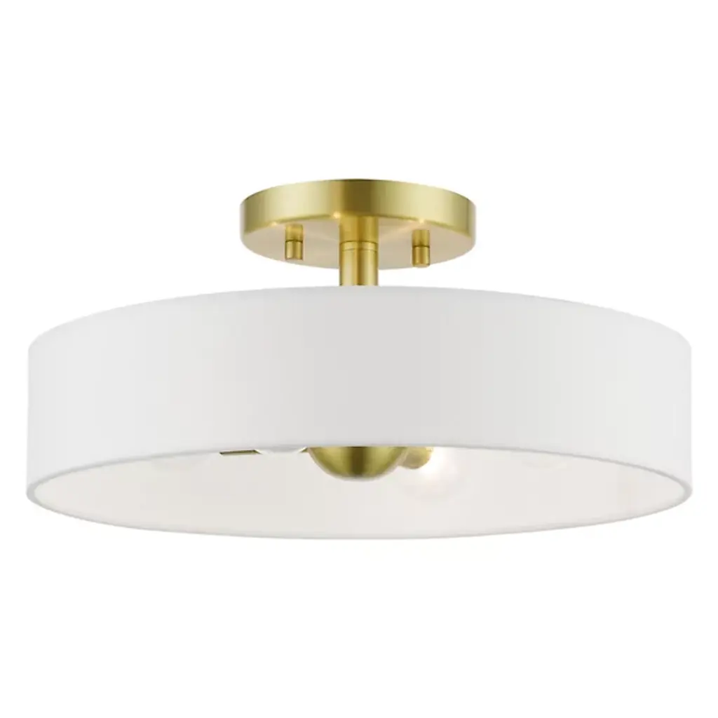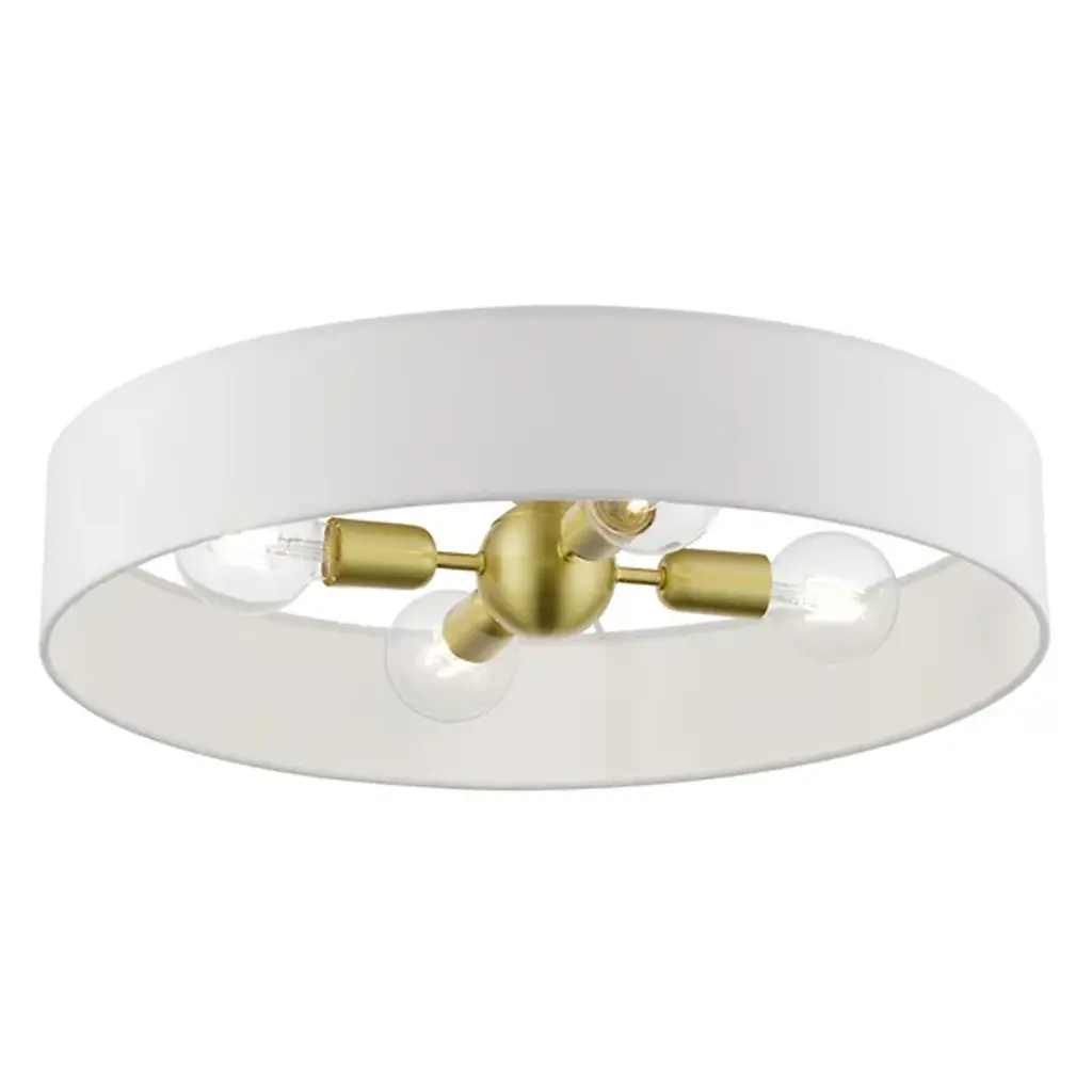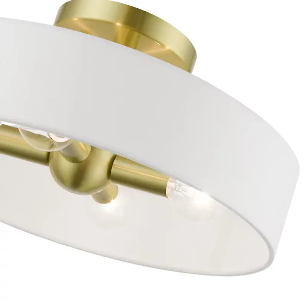 Short in profile, big in charm. The Dimitri Semi Flushmount from Alder & Ore is transitional lighting with a distinct personality. This design’s tidy composition serves as a natural addition with plenty of home stylings. While versatile in aesthetic, the piece’s low-sitting structure makes it a great addition to short ceilings. A hardback fabric drum shade creates an elegant halo silhouette around the light source. The shade’s wide opening puts in clear view the charming bulbs sitting horizontally inside. The bulbs face in opposite directions to produce a warm, room-filling glow.