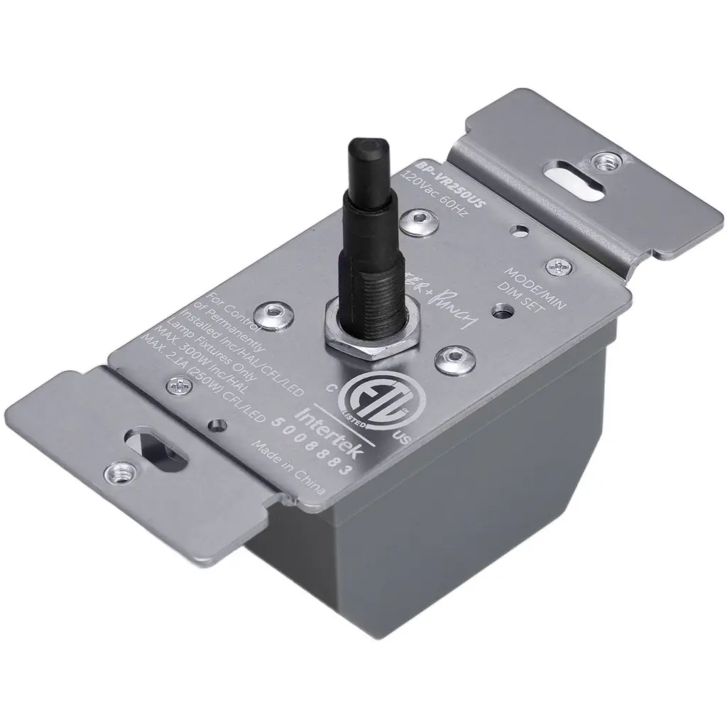 The dimmer module has intelligent load matching to enhance compatibility, while minimising noise and flicker. It can be used on a lighting circuit that powers dimmable LED, low voltage bulbs, LED drivers, and it is optimised for use with all Buster + Punch dimmable light bulbs. The dimmer module has a max load of 250W for LED and 300W halogen or incandescent light sources.This dimmer module is not a 0-10V dimmer and is not compatible with retractive switches, non-dimmable LED lamps, fluorescent and energy-saving bulbs and tubes, electric motors, and fans.Fit this dimmer as the only switch on a single-pole circuit. Or, to control your lighting from two locations on the same circuit, use this dimmer switch and one 3-way on/off switch. To control from more than two locations, contact us for details.
