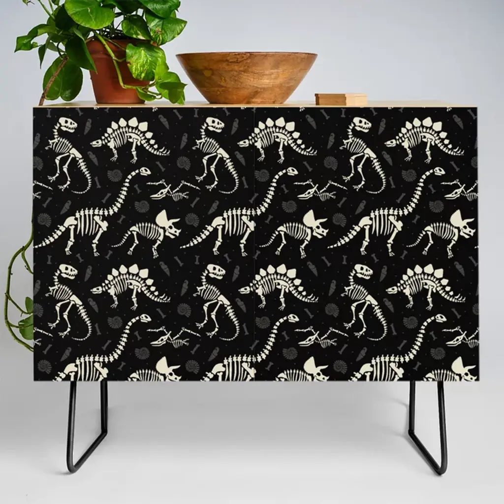 Dinosaur Fossils On Black Metal Print