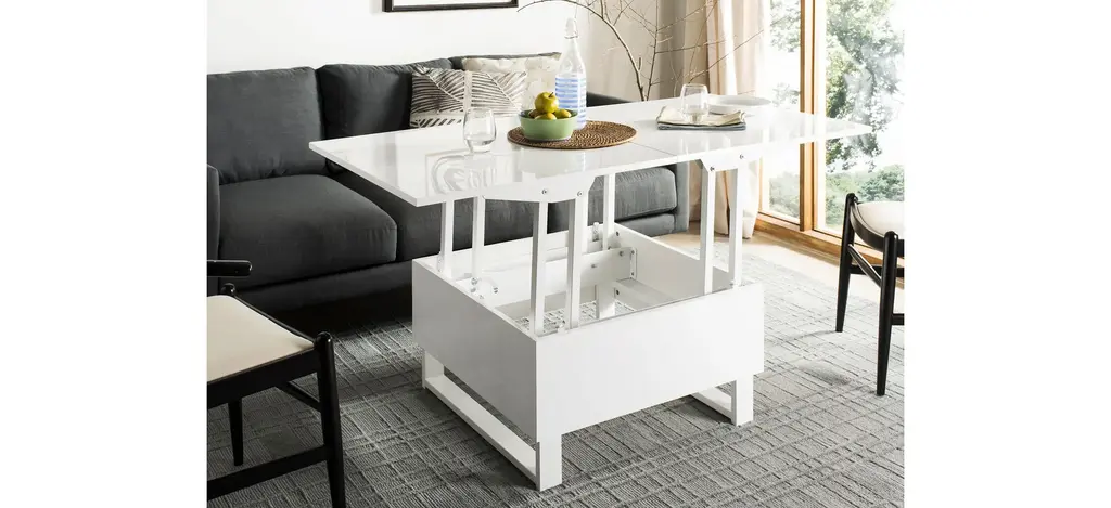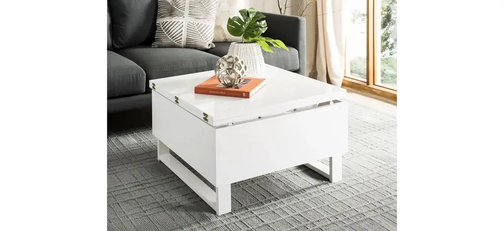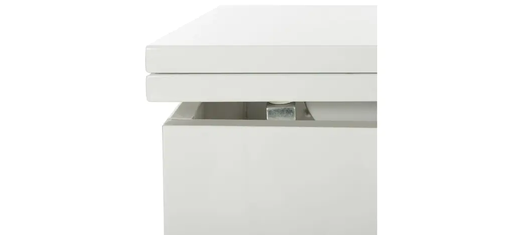 This lift top Dion coffee table was designed to recreate the contemporary furnishings that outfit the inner sanctuary of an iconic British designer. Designed to accommodate life's accoutrements, the depth of its white finish makes it an instant classic.